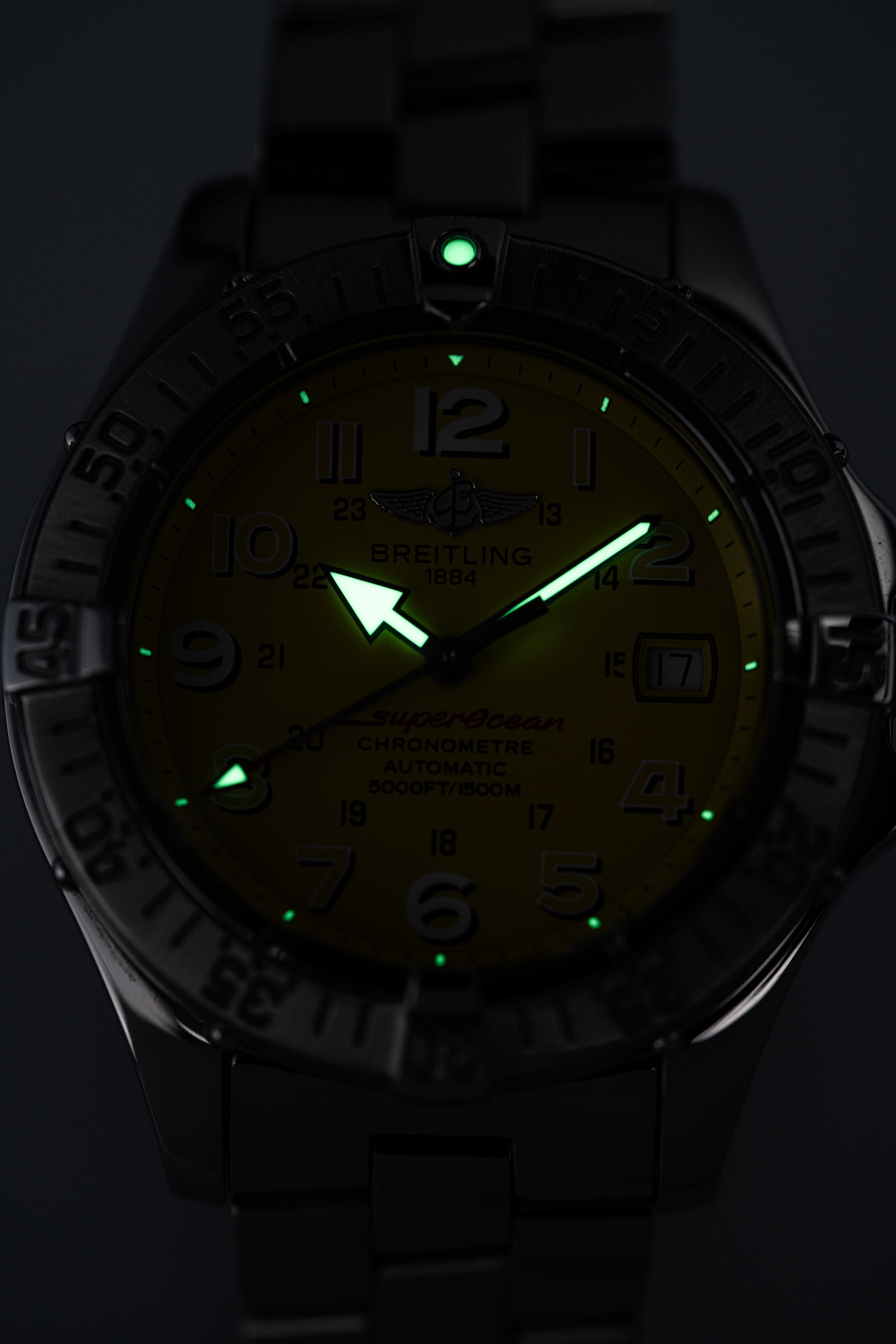 At its heart, the watch houses a reliable Breitling automatic movement, known for precision and durability, making it a trusted companion for both diving and everyday wear.