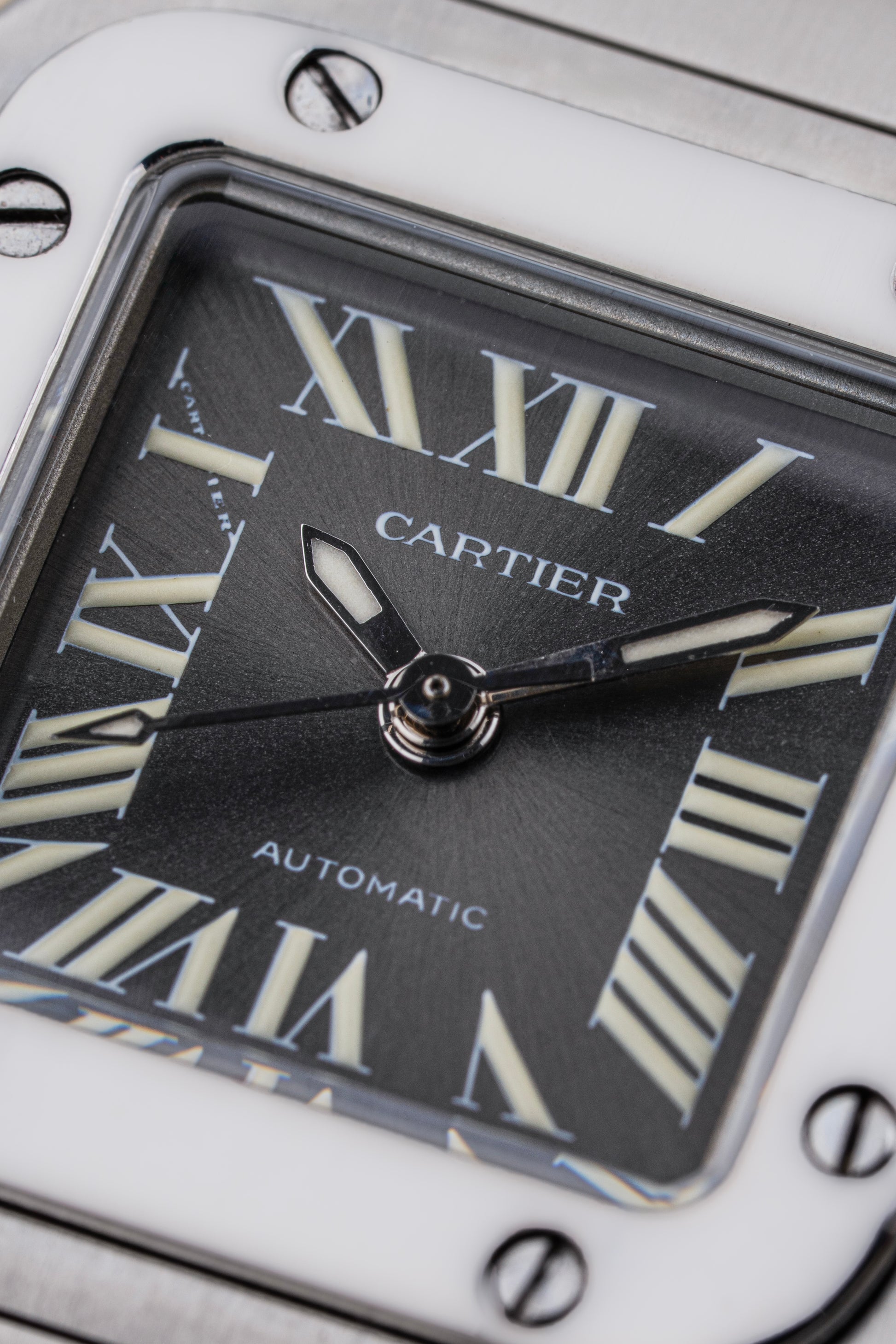 For sale is a stunning Cartier Santos Galbée Ref. 2423 Automatic in Stainless Steel, featuring a 24mm case size and a rare grey sunburst dial.
