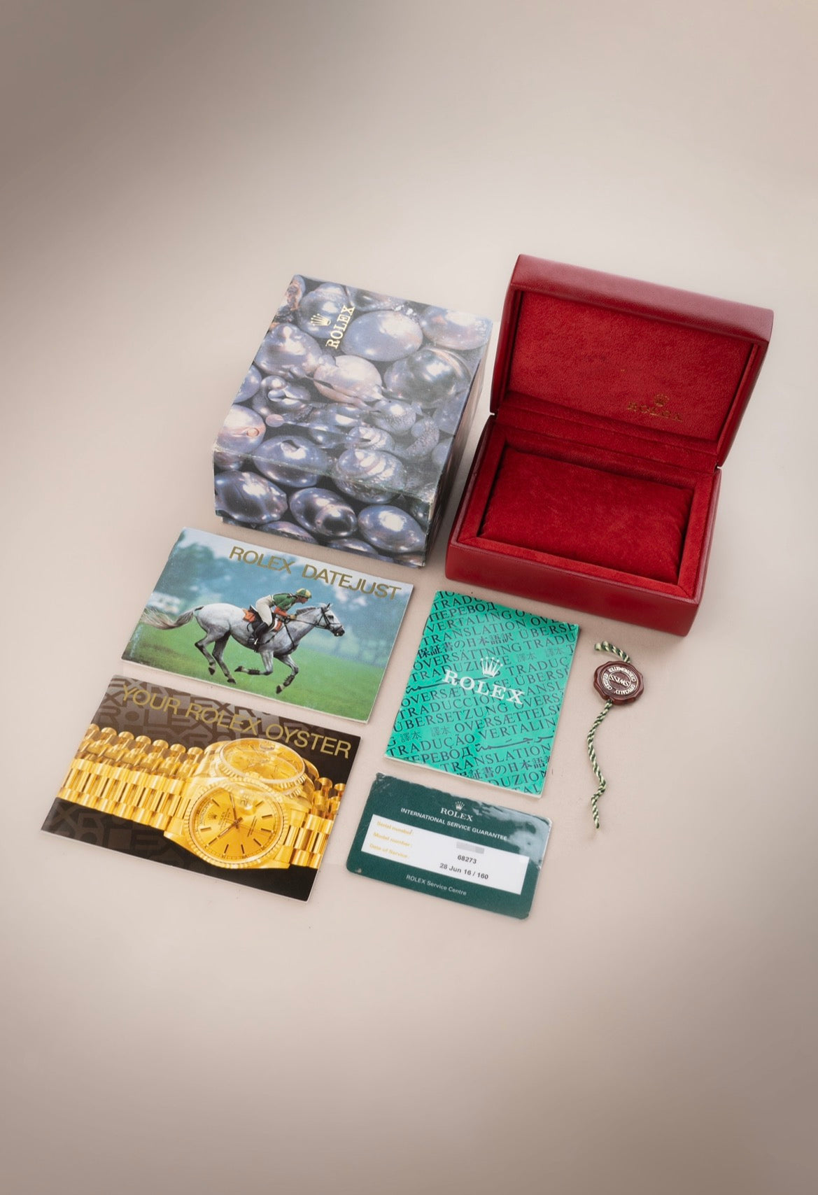 This watch is in full working order and is offered with its original box, Rolex service card from 2016, manuals, and swing tag.