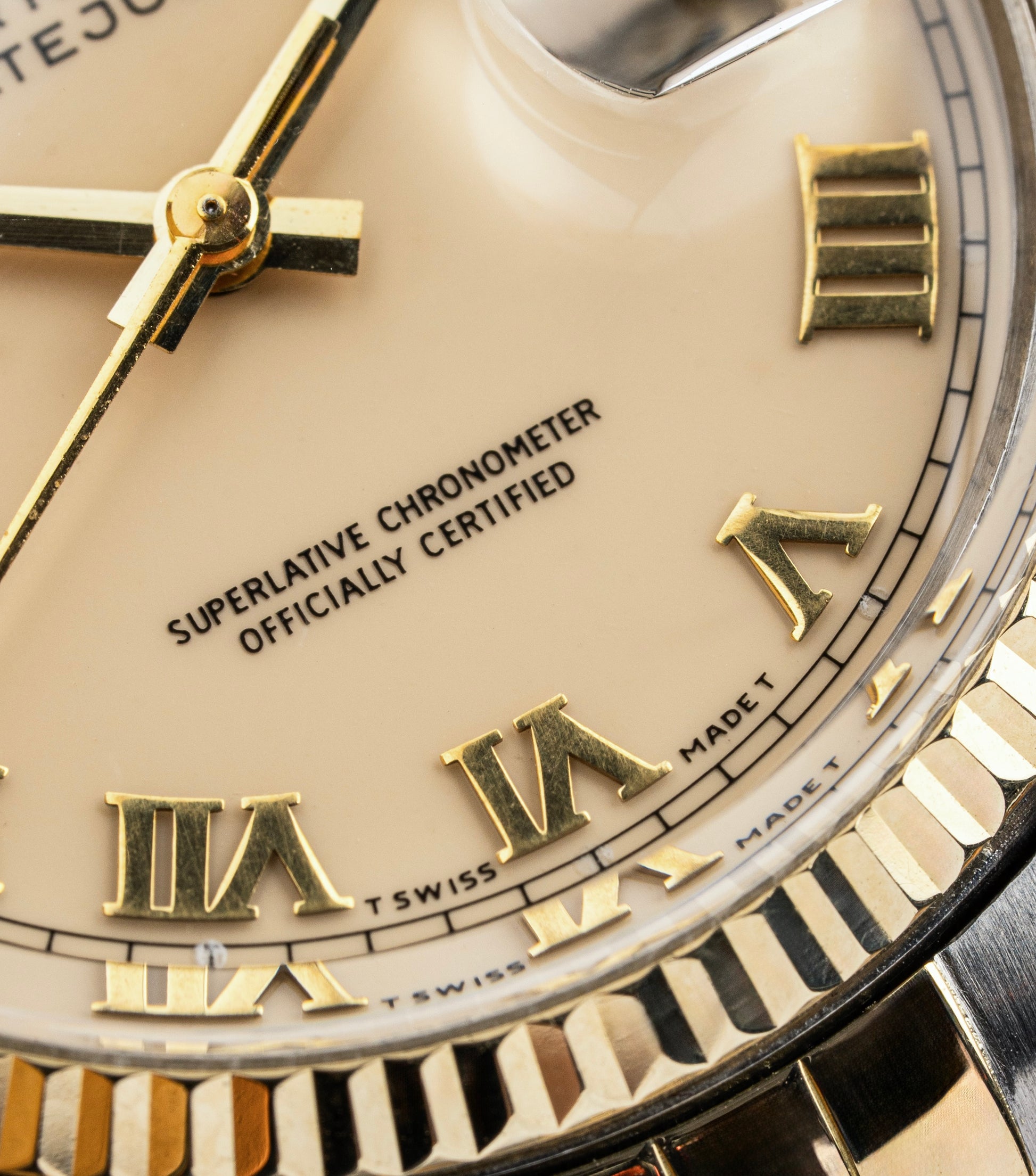 This Classic piece features a fluted bezel, a jubilee bracelet and a stunning cream coloured dial with Gold Roman Numeral Hour Markers.