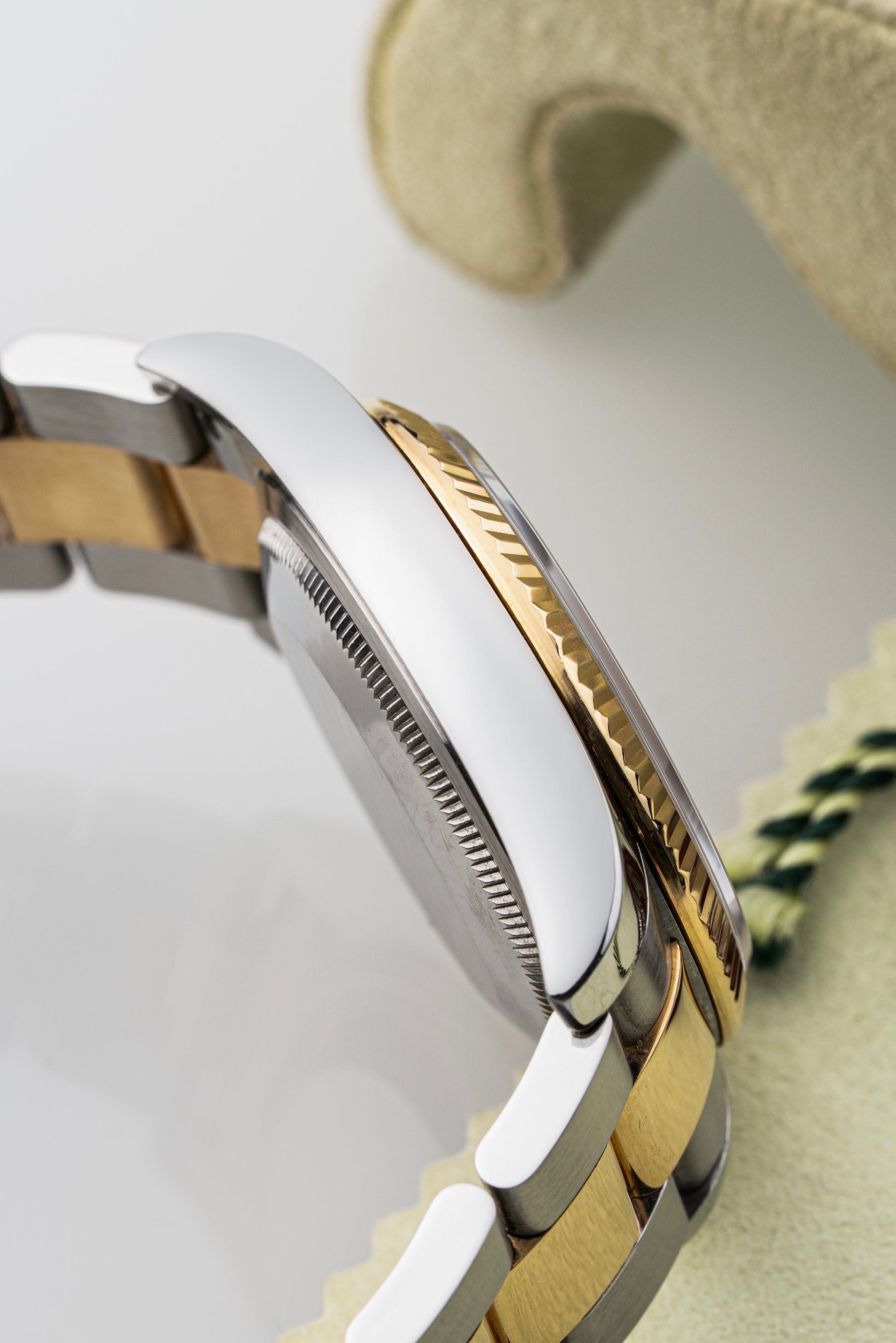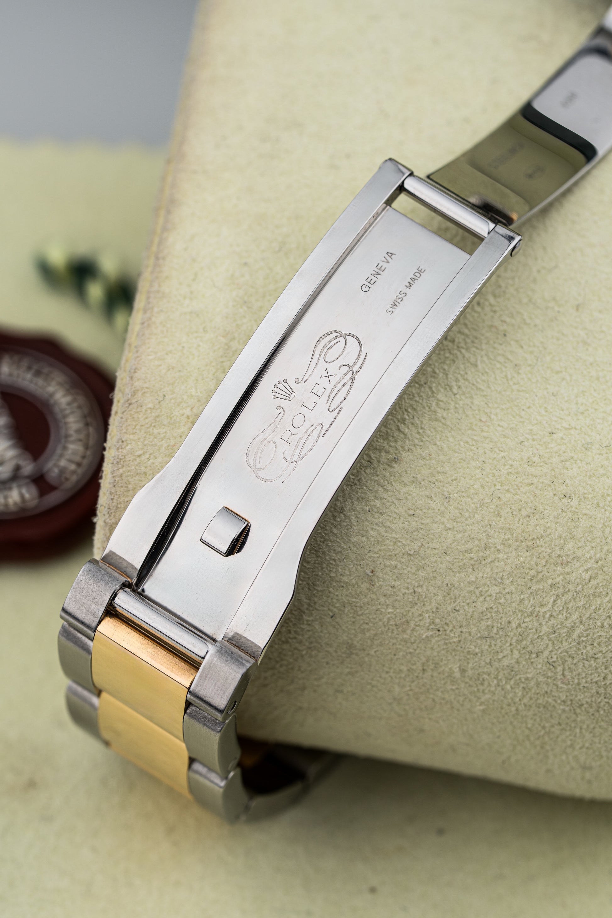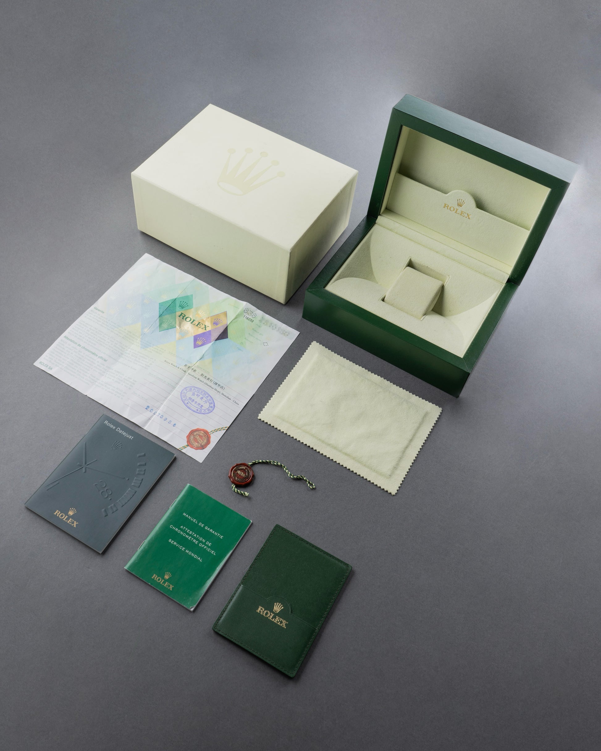 The Bracelet: This example showcases the robust and timeless Oyster bracelet, renowned for its flat three-piece links and exceptional durability. A hallmark of Rolex design, the Oyster bracelet blends sportiness with refinement, making it versatile for both everyday wear and more elevated occasions. The Oysterclasp provides a secure and seamless closure, maintaining the bracelet’s clean lines while ensuring comfort and practicality.