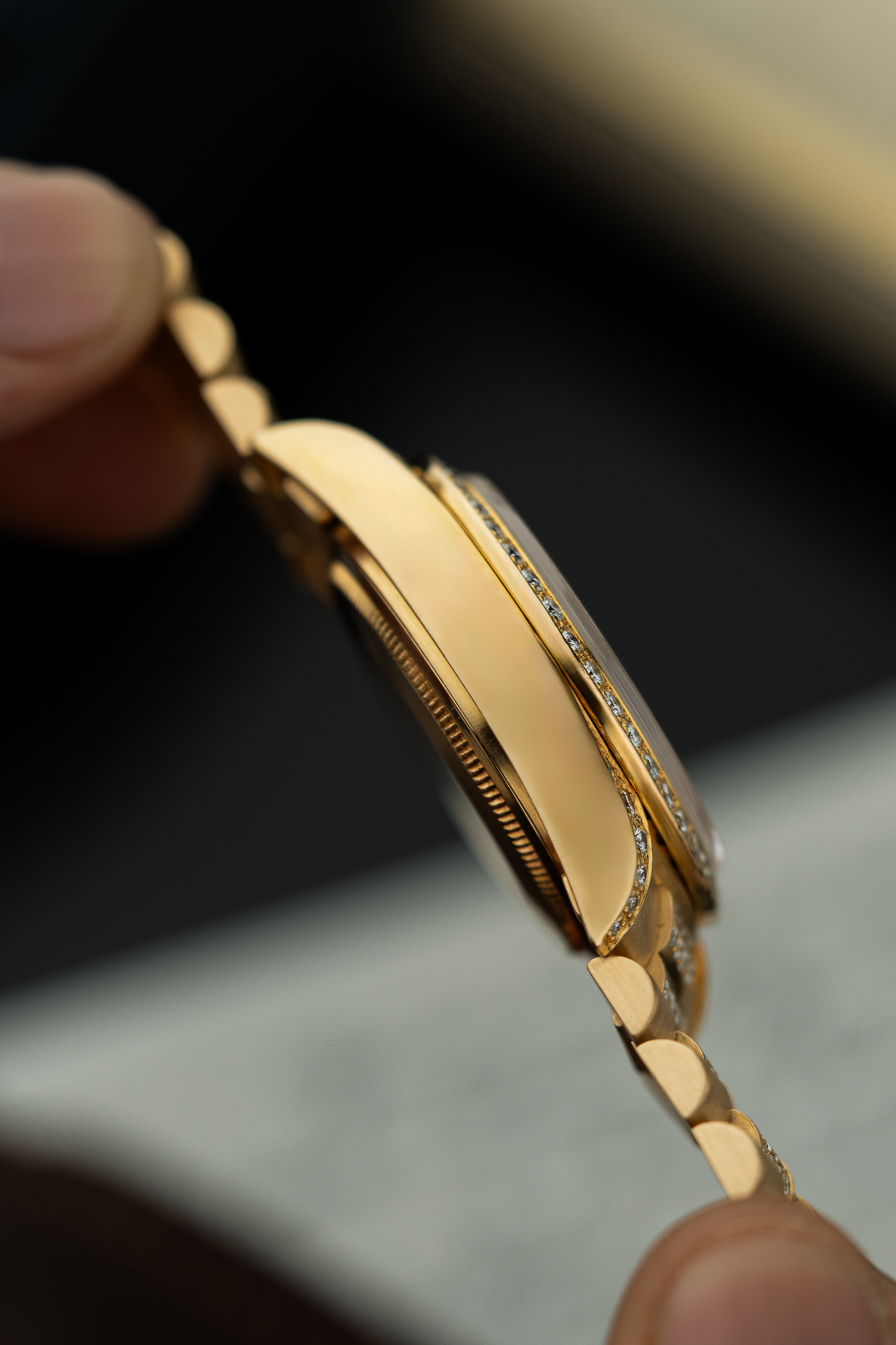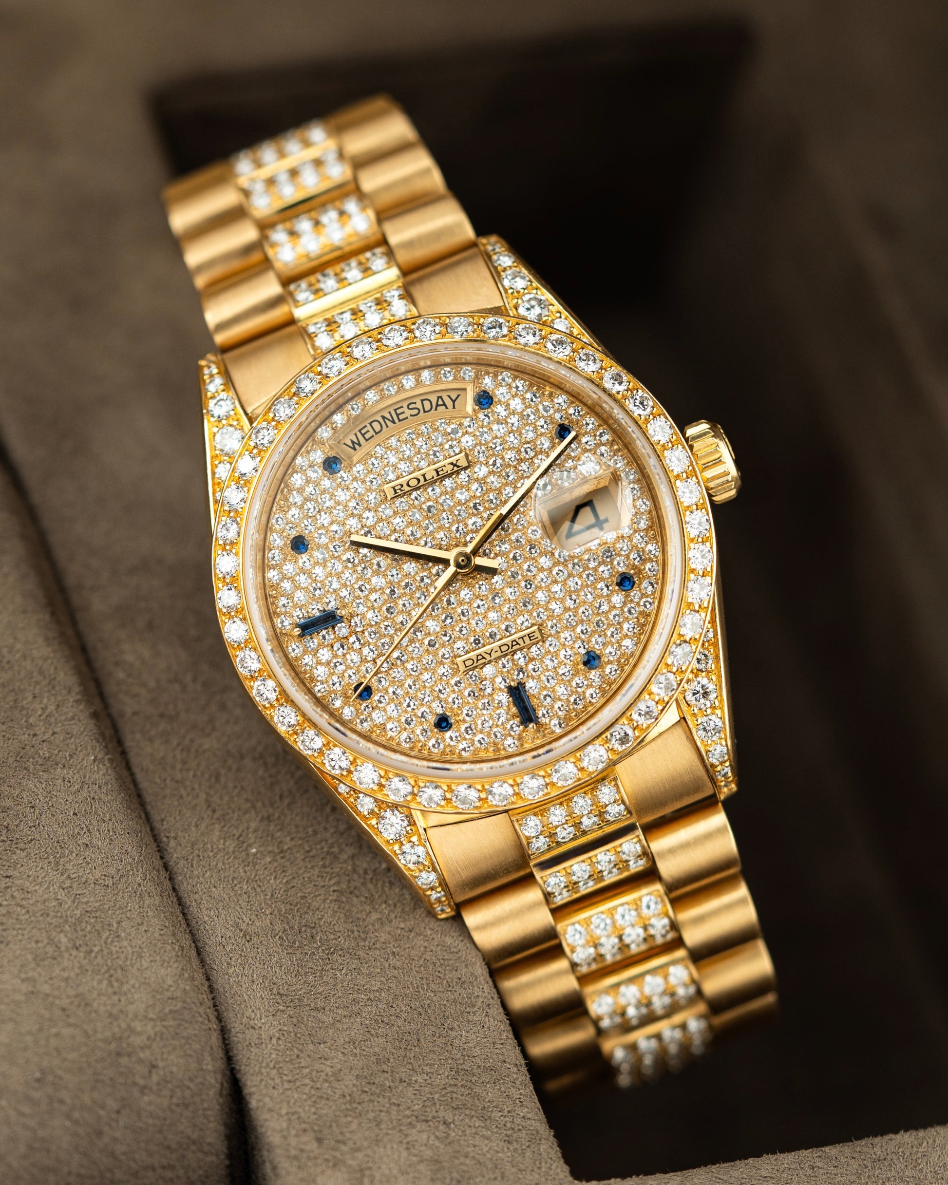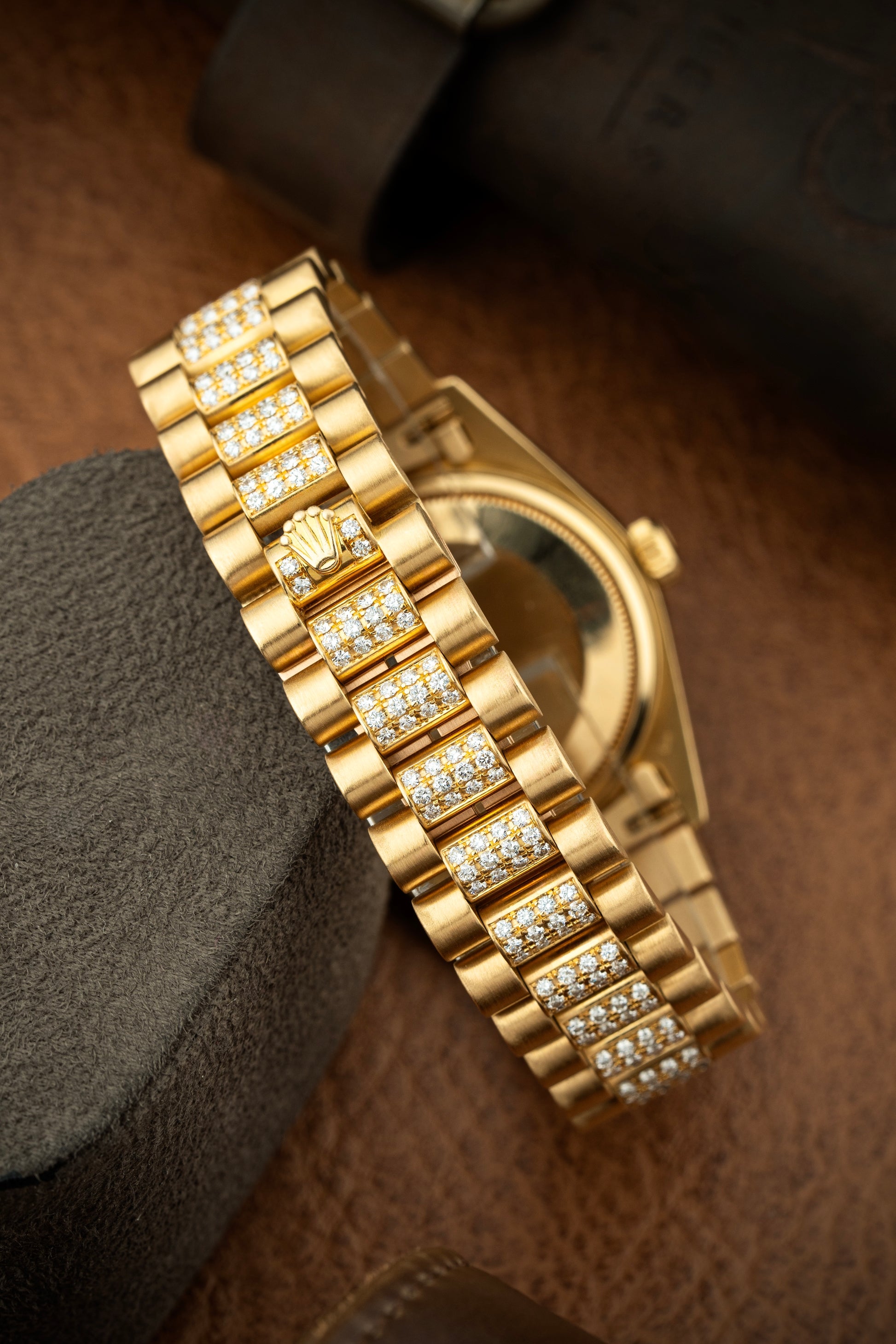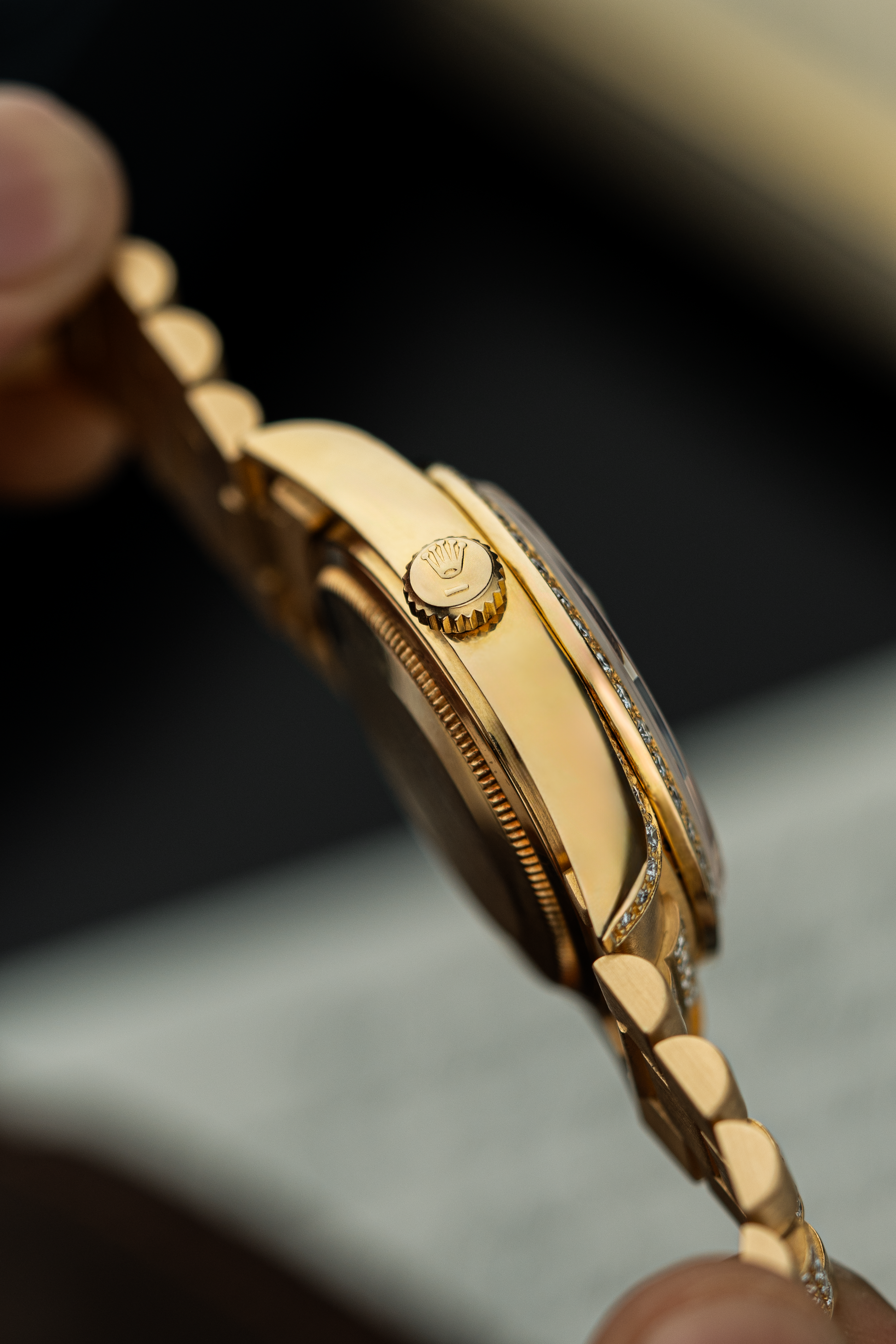 For Rolex collectors, a fully diamond-set Day-Date may represent the pinnacle of their collection. It’s a rare, luxurious, and highly desirable piece that adds a unique flair to any watch collection. For collectors who already own more basic models of the Day-Date, the diamond-set version offers an extraordinary upgrade.