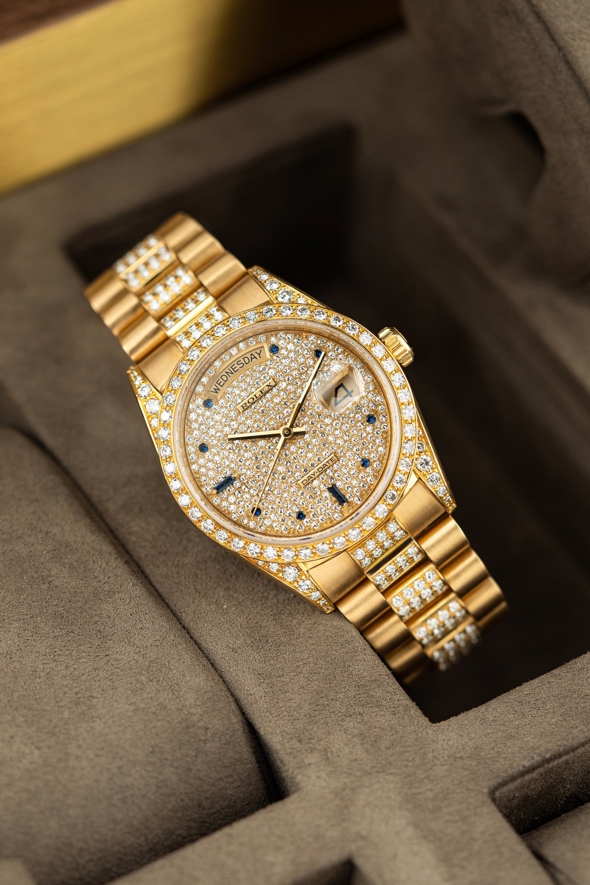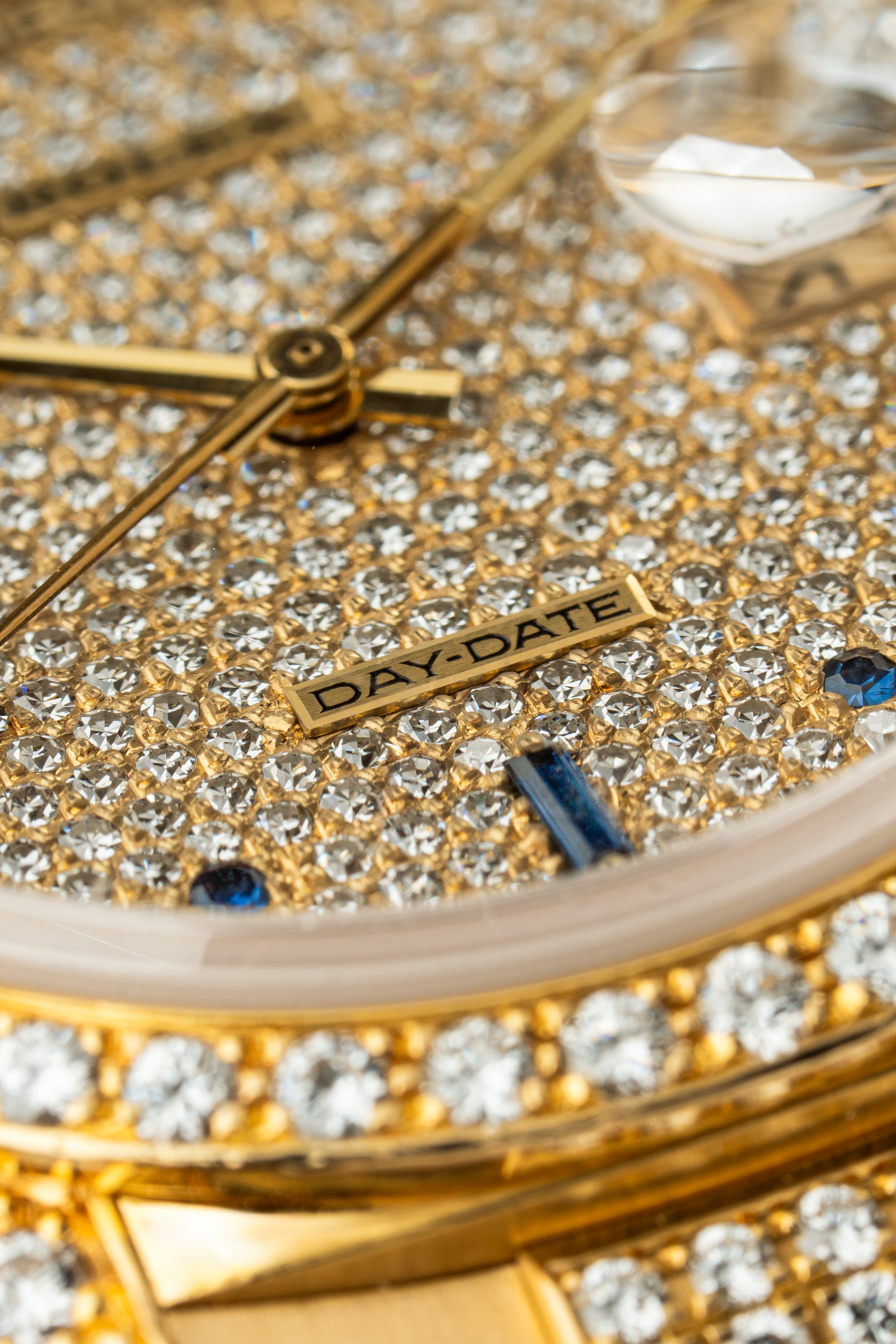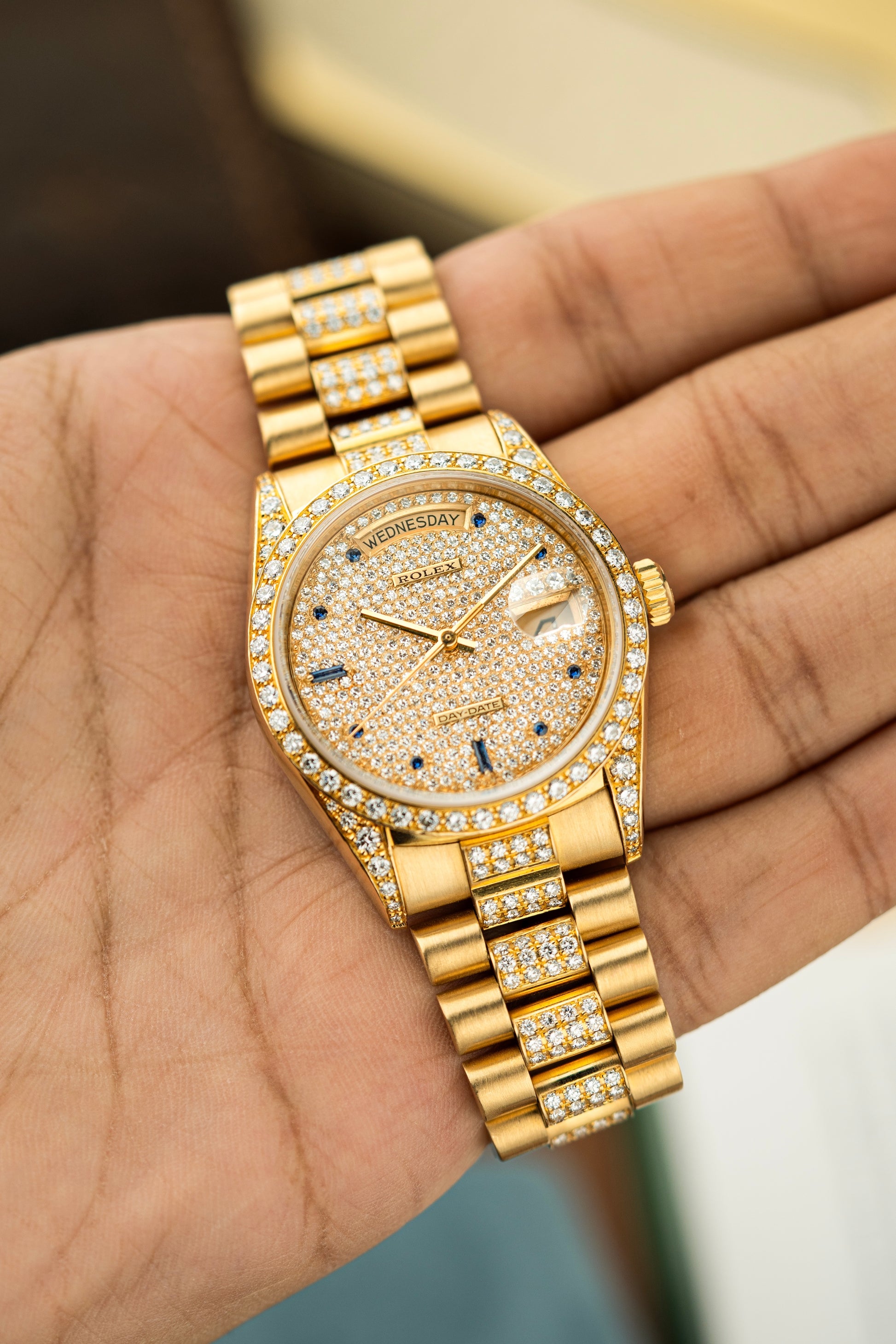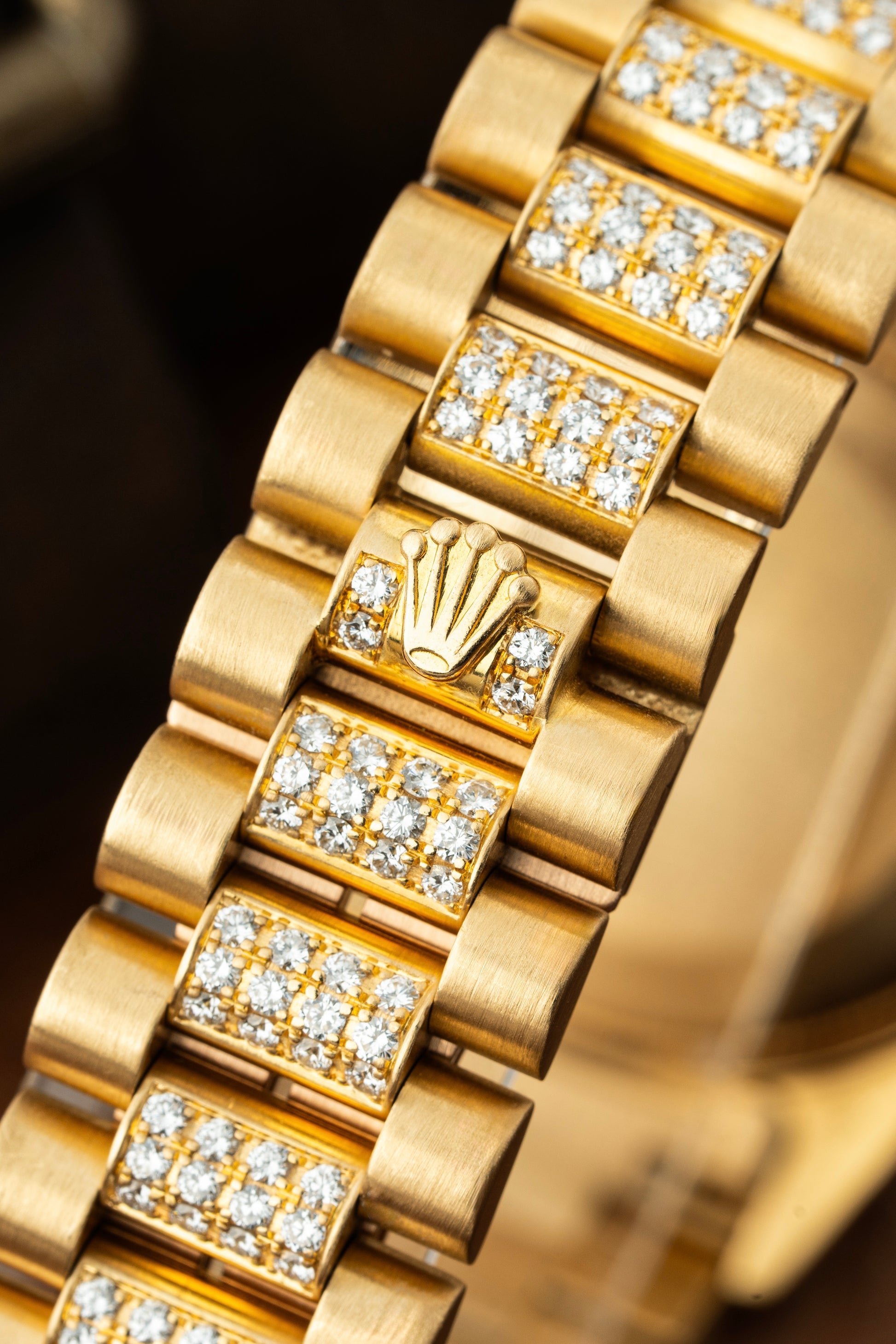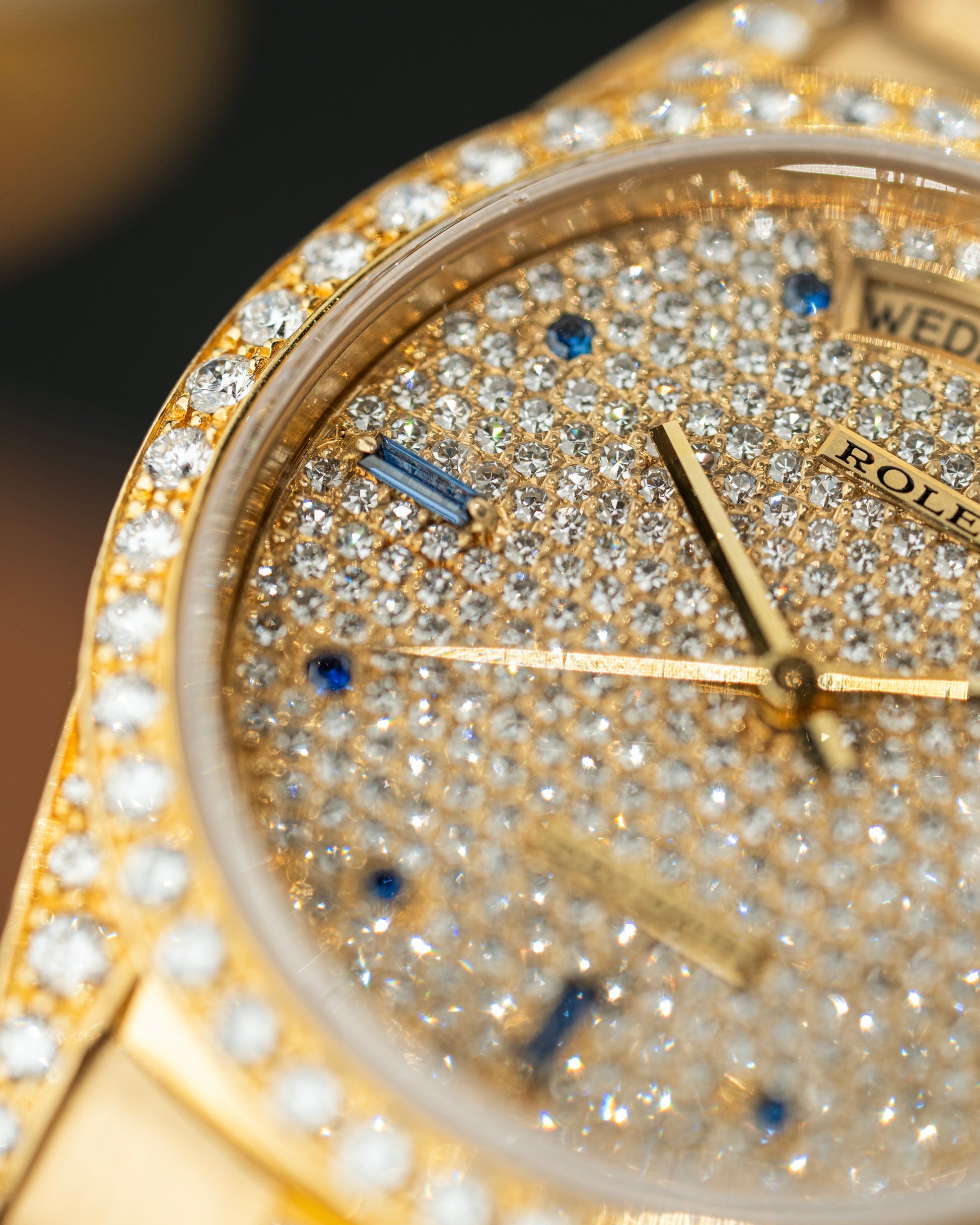 For Rolex collectors, a fully diamond-set Day-Date may represent the pinnacle of their collection. It’s a rare, luxurious, and highly desirable piece that adds a unique flair to any watch collection. For collectors who already own more basic models of the Day-Date, the diamond-set version offers an extraordinary upgrade.
