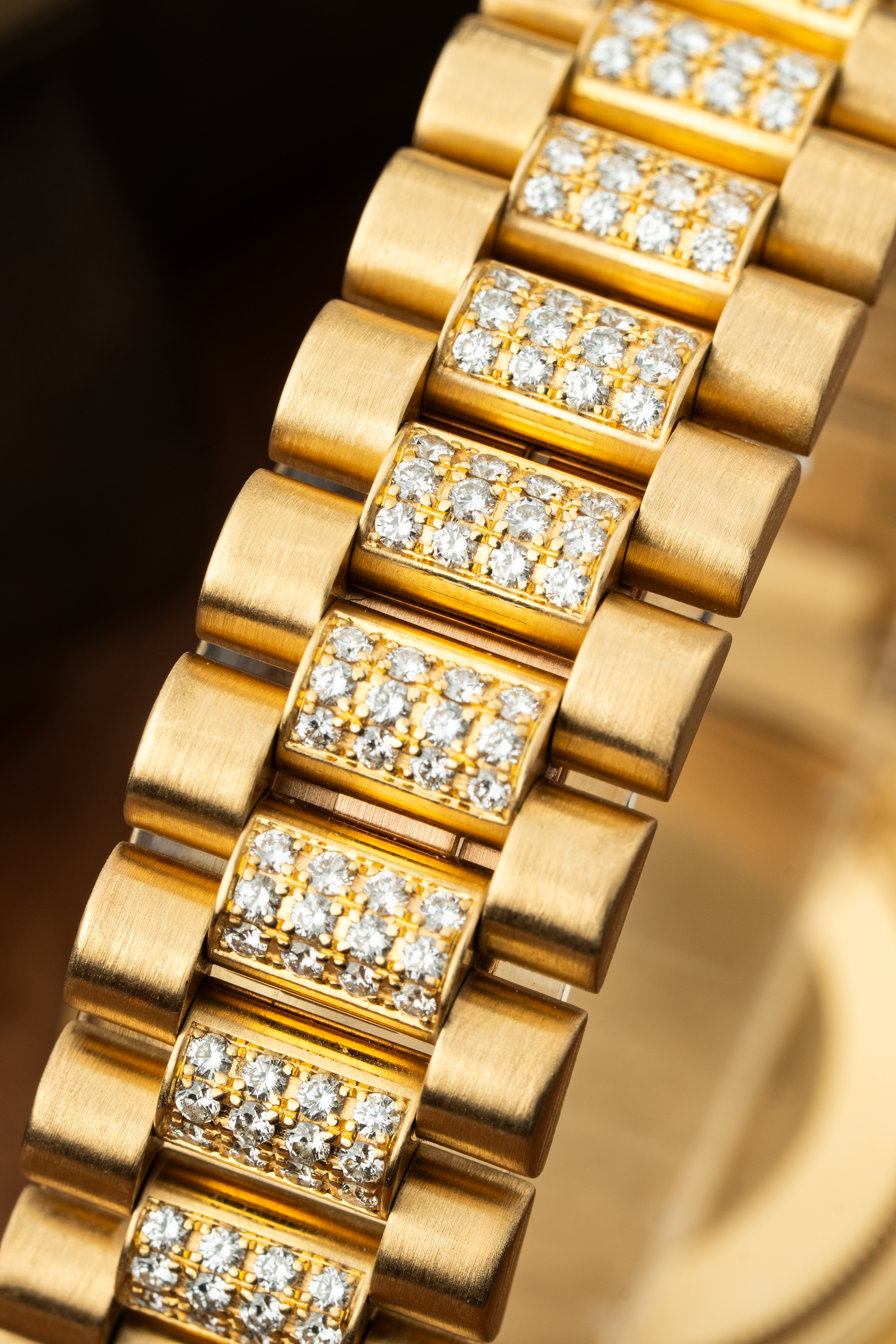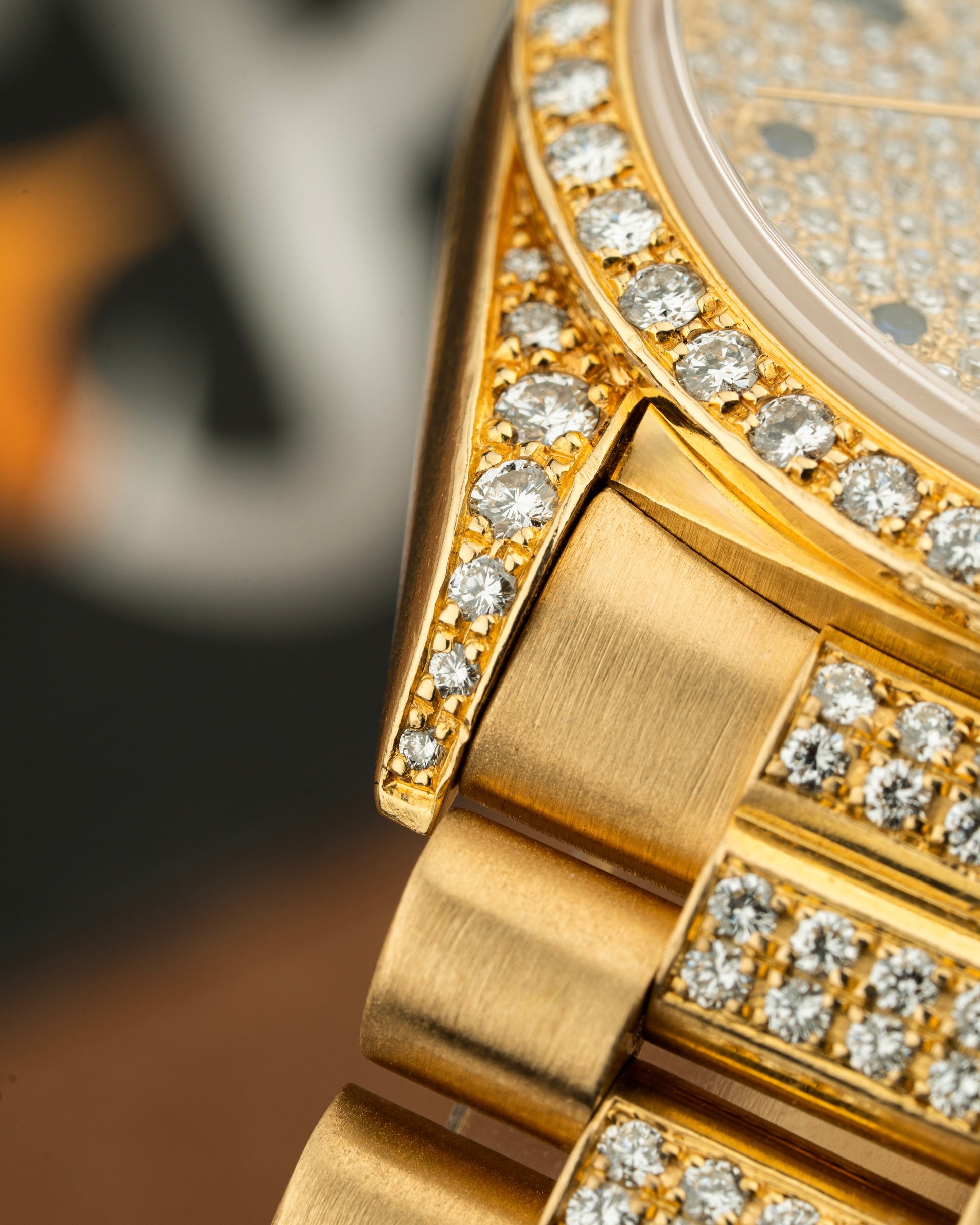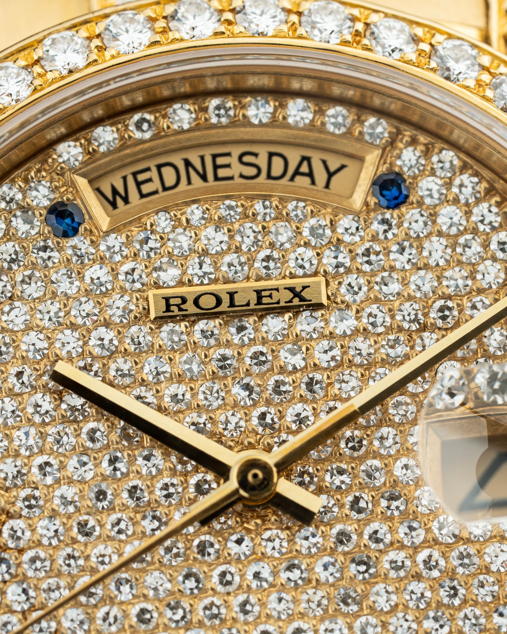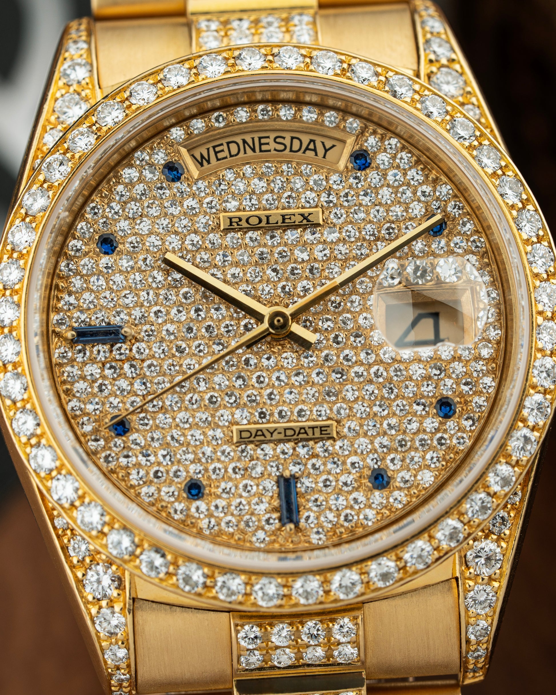 For Rolex collectors, a fully diamond-set Day-Date may represent the pinnacle of their collection. It’s a rare, luxurious, and highly desirable piece that adds a unique flair to any watch collection. For collectors who already own more basic models of the Day-Date, the diamond-set version offers an extraordinary upgrade.