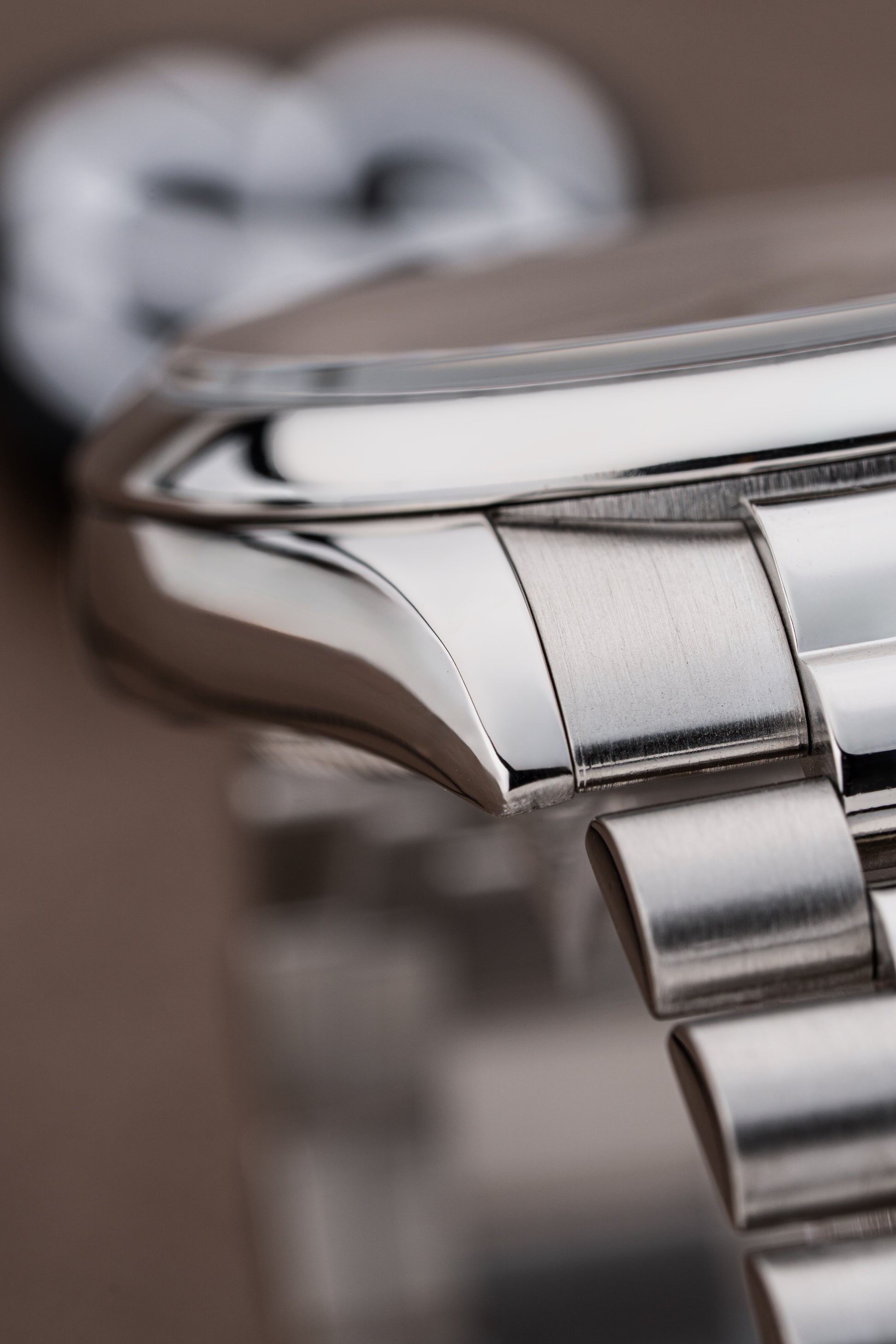 This example of the 118206 features the upgraded solid-link bracelet and new style clasp which improves the its overall durability, weight, and comfort. Solid links provide a more robust feel on the wrist, giving the watch a sturdier, premium presence while also offering better longevity.