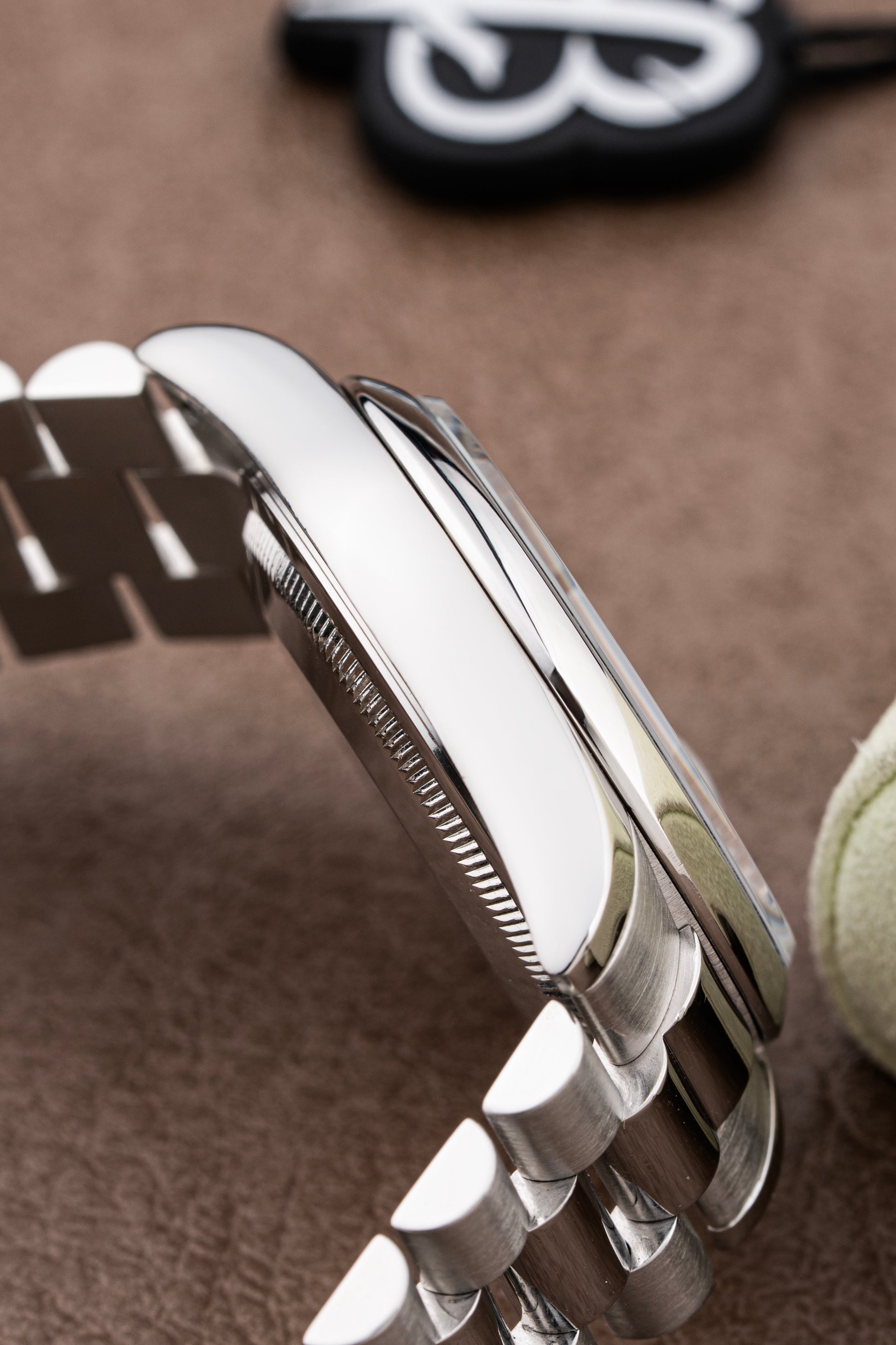 The Rolex Day-Date, often referred to as the "President’s Watch," holds legendary status as a symbol of success, leadership, and sophistication, famously worn by influential figures across the world. When crafted from platinum, the Day-Date reaches unparalleled levels of prestige. Platinum, a rare and durable metal, enhances the watch’s exclusivity, offering a stunning, radiant sheen that cannot be replicated by other materials. The platinum Day-Date combines Rolex’s signature precision with the highest standard of craftsmanship, making it not only a remarkable timepiece but also a rare luxury item that signifies achievement and distinction at the highest level.