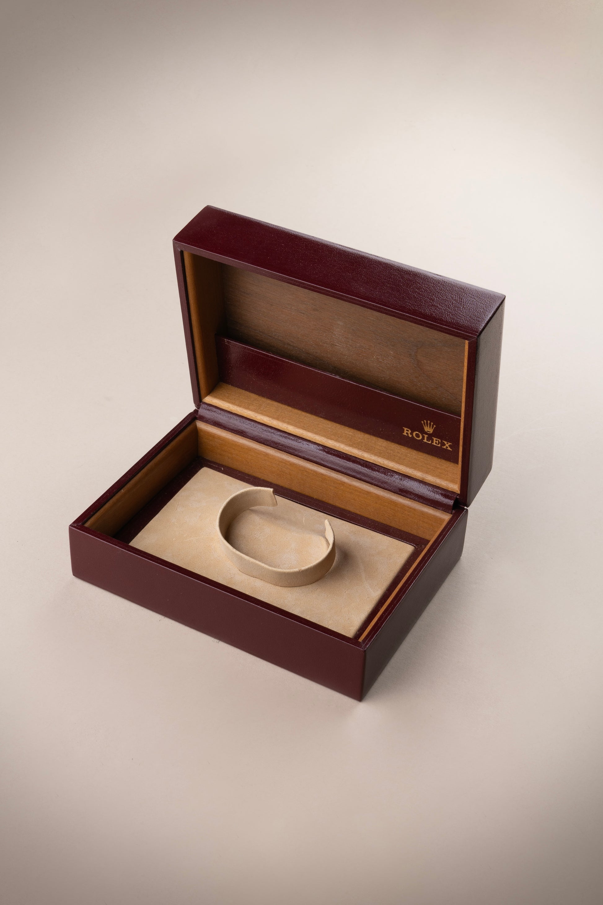 The watch is protected by an acrylic crystal, complete with the iconic Cyclops magnifier for easy reading of the date.