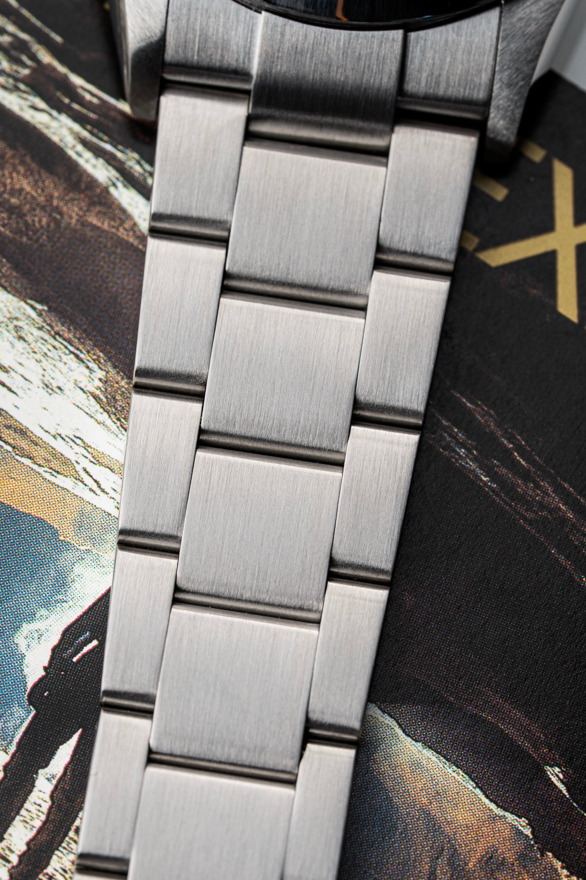 The dial is black with luminescent markers, featuring the distinctive 3, 6, and 9 Arabic numerals accompanied with the sportier ‘Mercedes’ hands which provide excellent legibility.