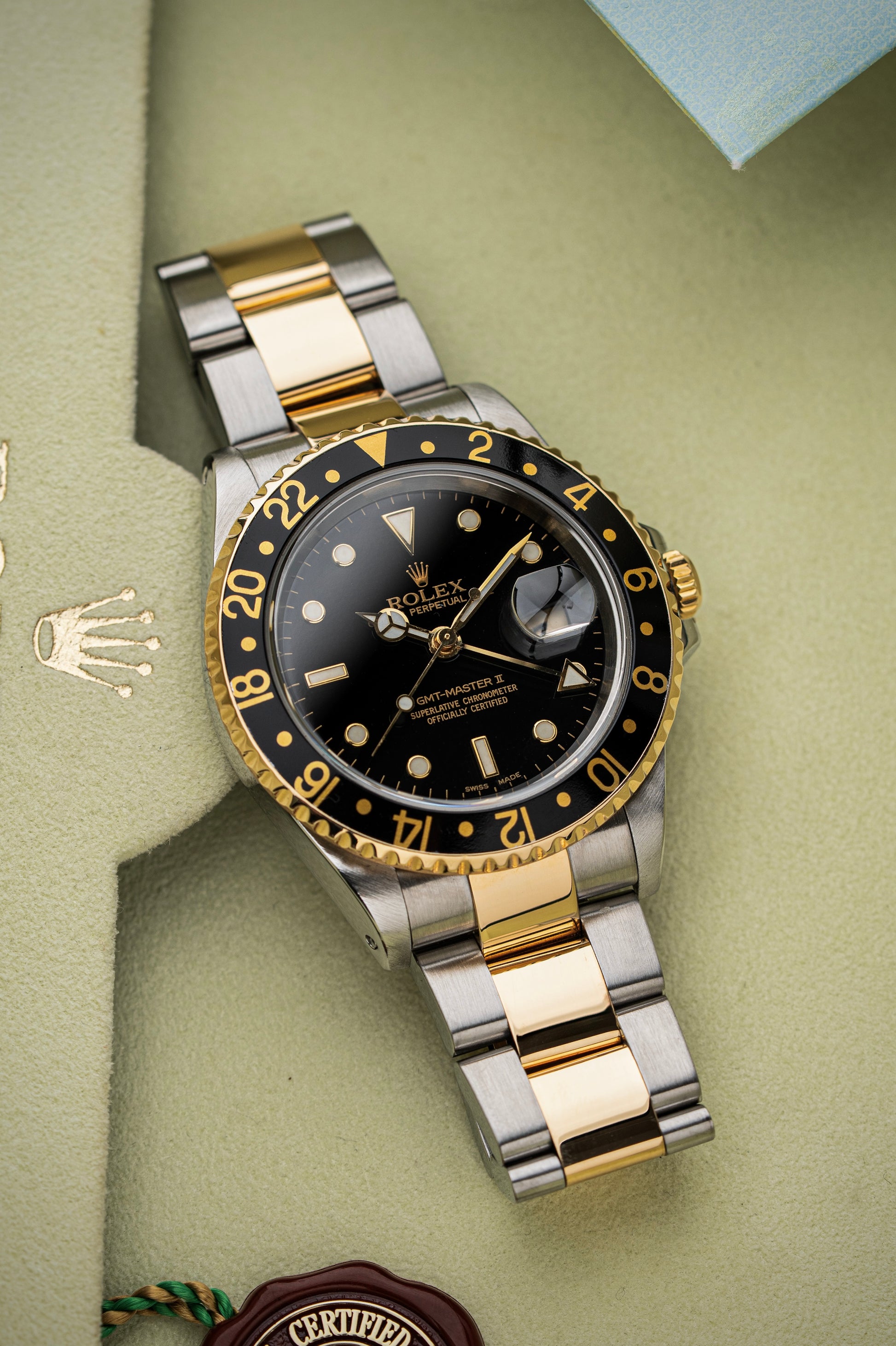 This reference is part of the long-standing GMT-Master II lineup, which allows the wearer to track two time zones simultaneously thanks to its independently adjustable hour hand and 24-hour GMT hand. This makes it an ideal companion for frequent travelers or anyone with international ties.