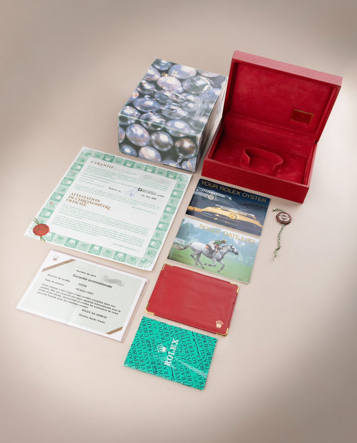 The Rolex Lady-Datejust 69238 is the quintessential blend of luxury, refinement, and everyday wearability. Its solid 18k yellow gold case and signature President bracelet give the watch a graceful presence on the wrist, while maintaining the timeless Datejust design language that has made the collection a cornerstone of Rolex’s lineup for generations.