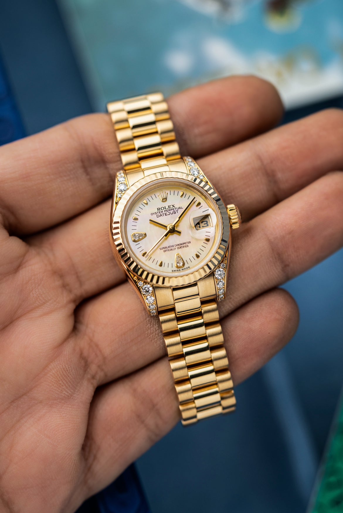 The Rolex Lady-Datejust is a timeless icon of refinement, elegance, and everyday luxury. This reference 179238 exemplifies the collection’s enduring appeal, pairing Rolex’s unmistakable Datejust design with precious materials and feminine proportions. Its classic 26mm yellow gold case offers a graceful wrist presence while remaining effortlessly wearable.