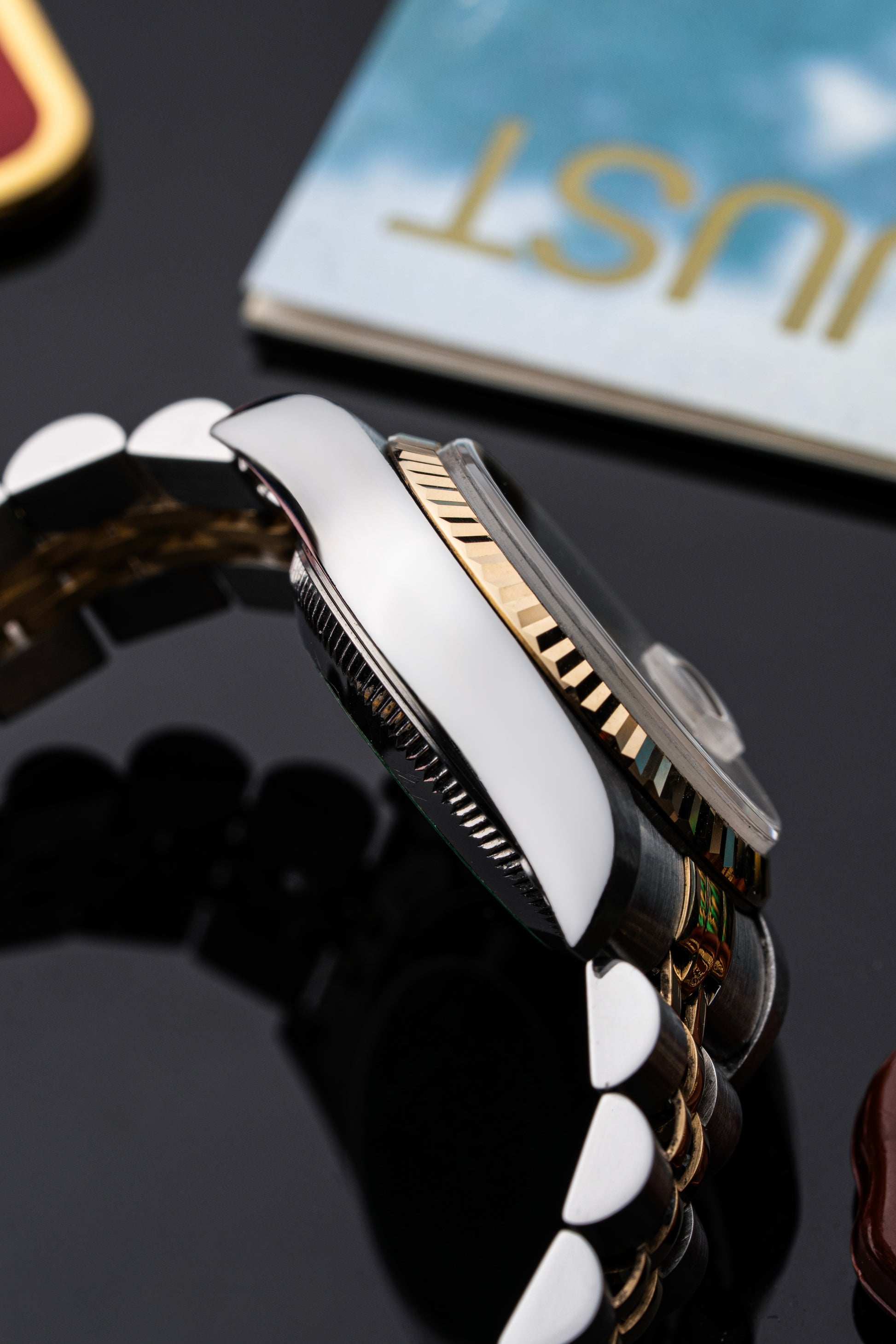 The watch is fitted with the legendary Rolex Jubilee bracelet in stainless steel and 18k yellow gold, celebrated for its comfort, flexibility, and timeless appeal.