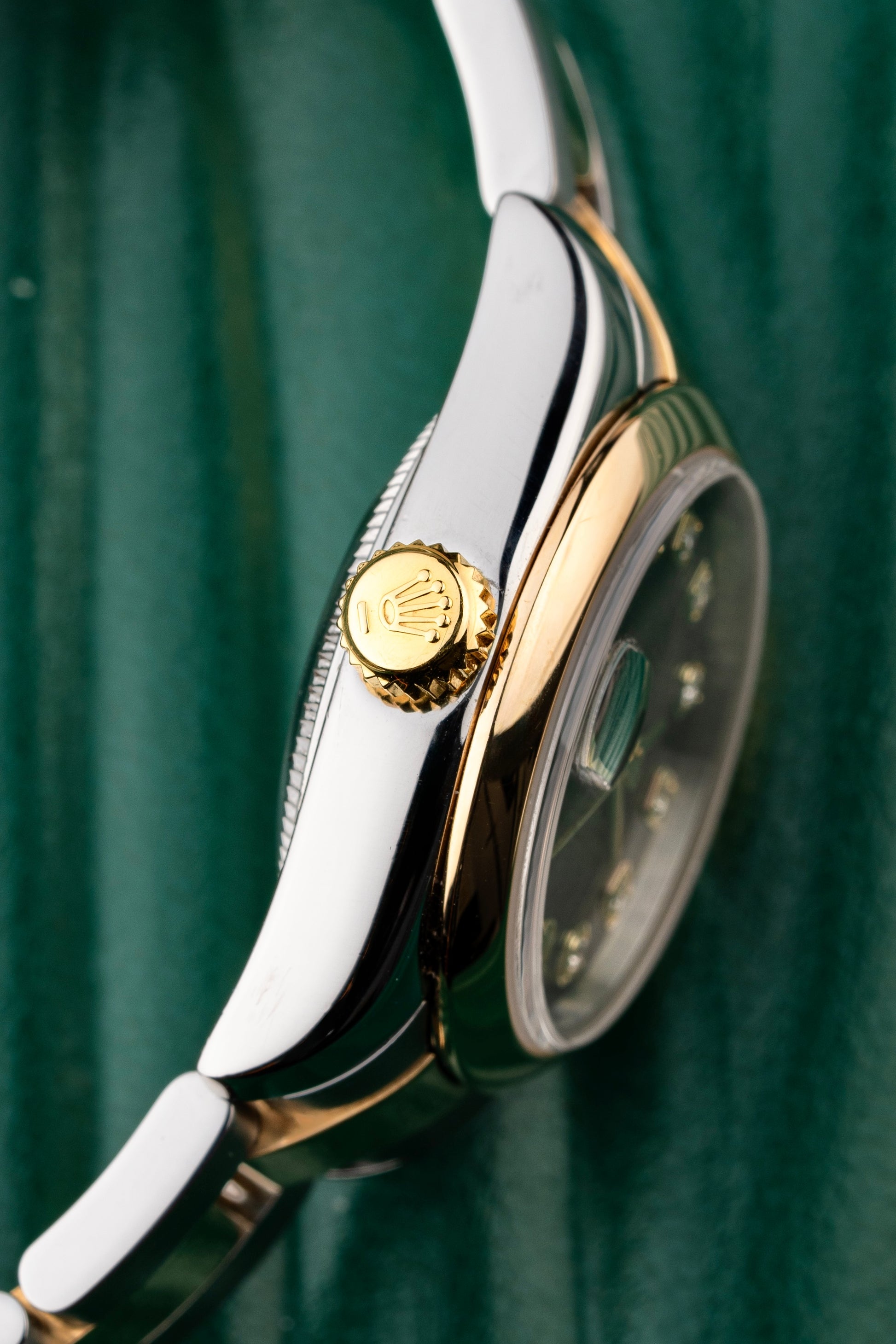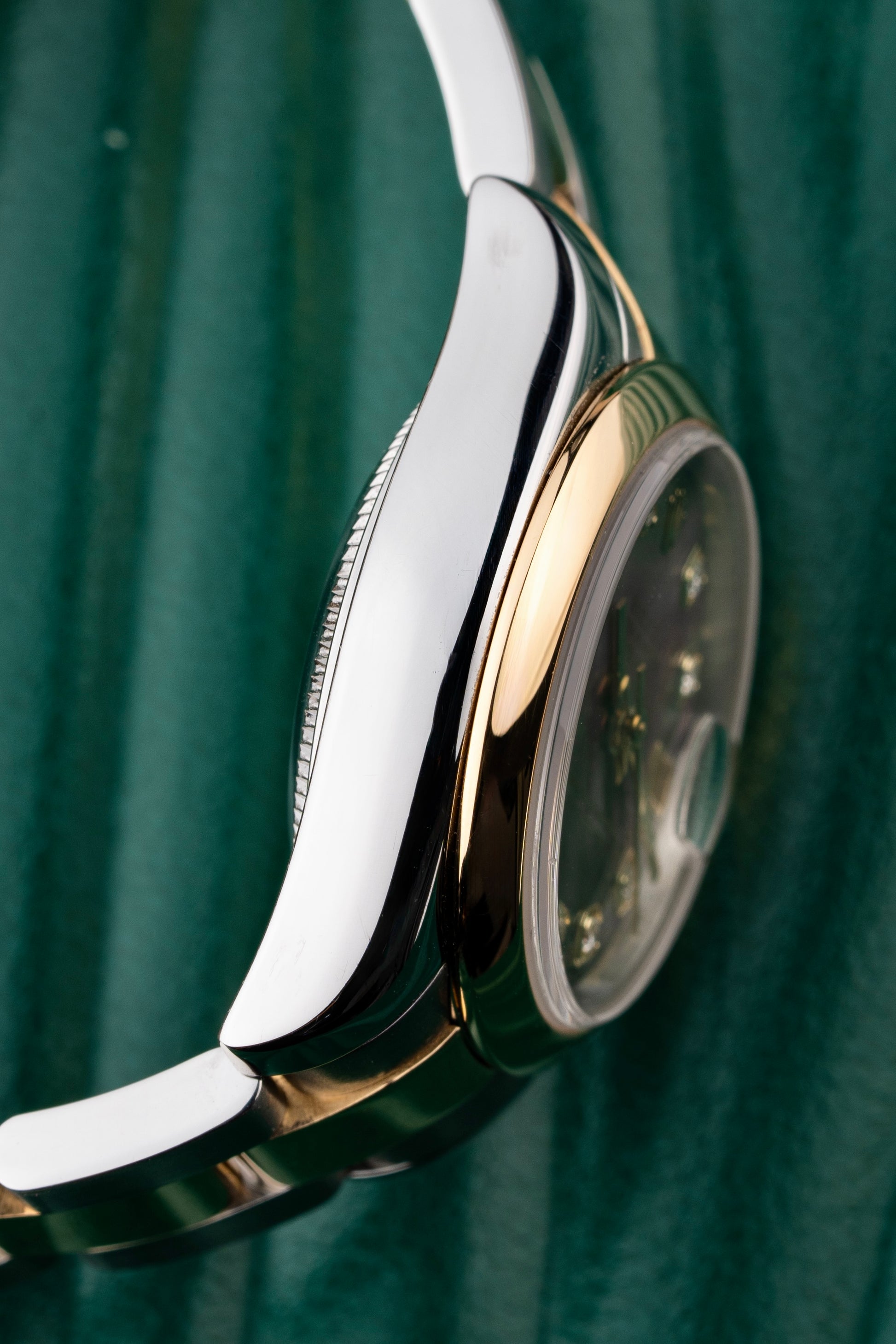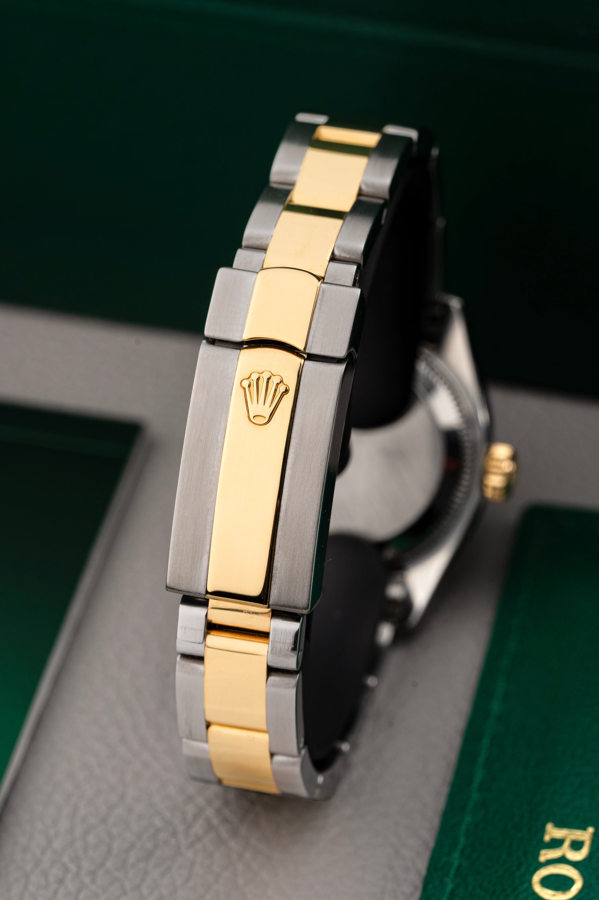The Oyster Case & Bracelet are both crafted in Steel & 18k Yellow Gold. The Domed Bezel and Oyster Bracelet pair perfectly for an understated and elegant look.