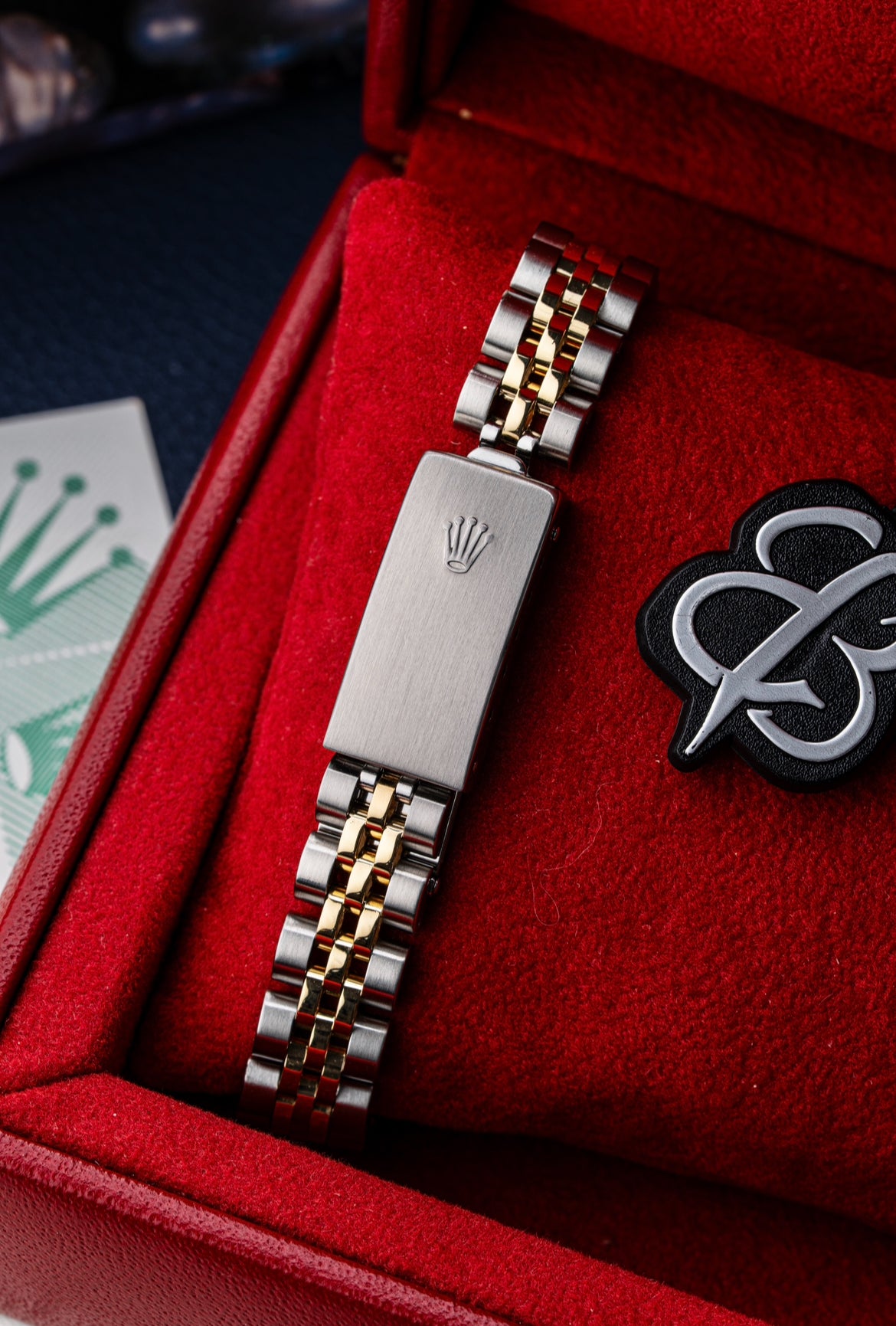 Completing the look is the iconic Rolex Jubilee bracelet in stainless steel and 18k yellow gold, renowned for its comfort, fluidity, and timeless elegance.