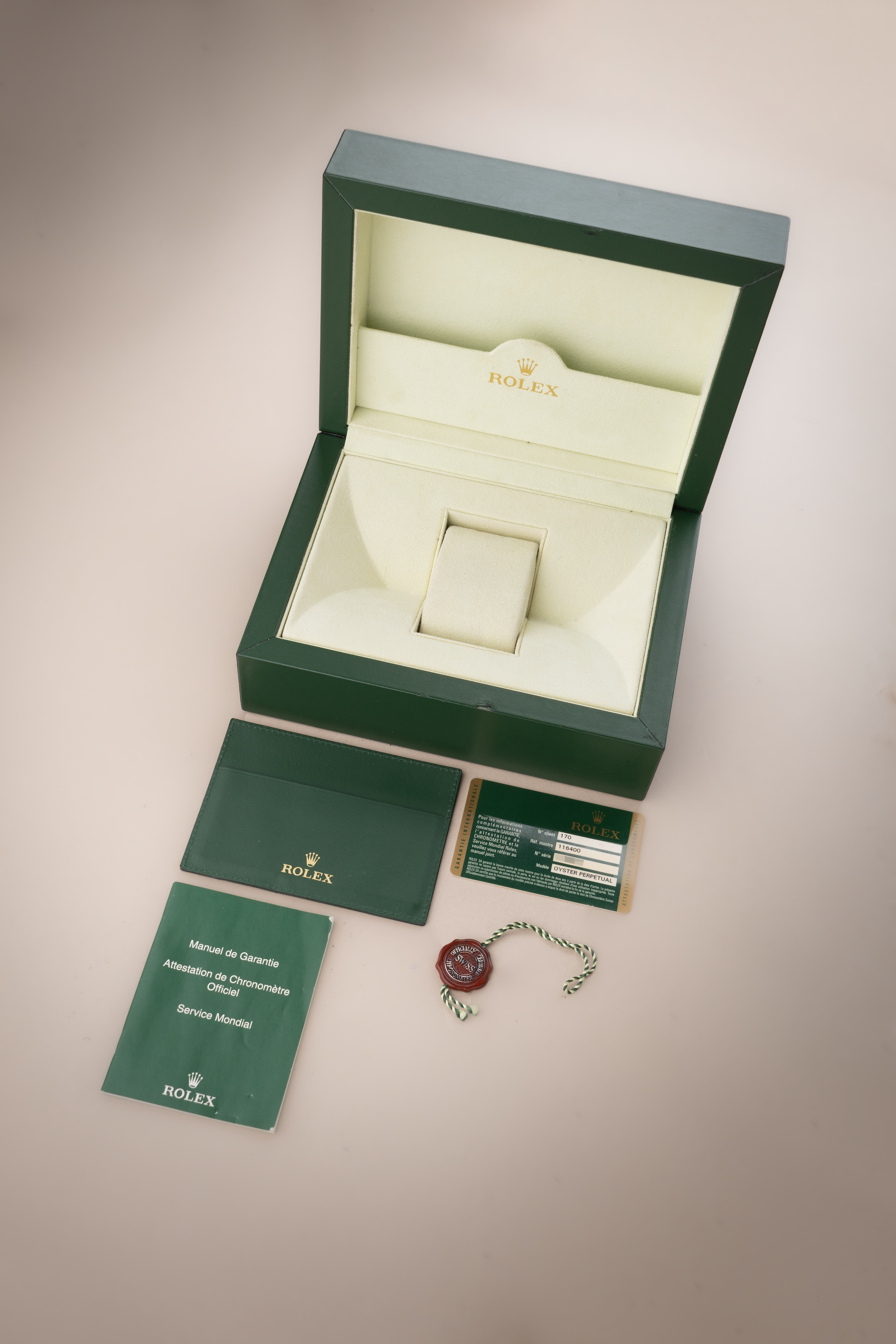 This example is offered with its original Rolex box, warranty card (papers) and leather wallet.