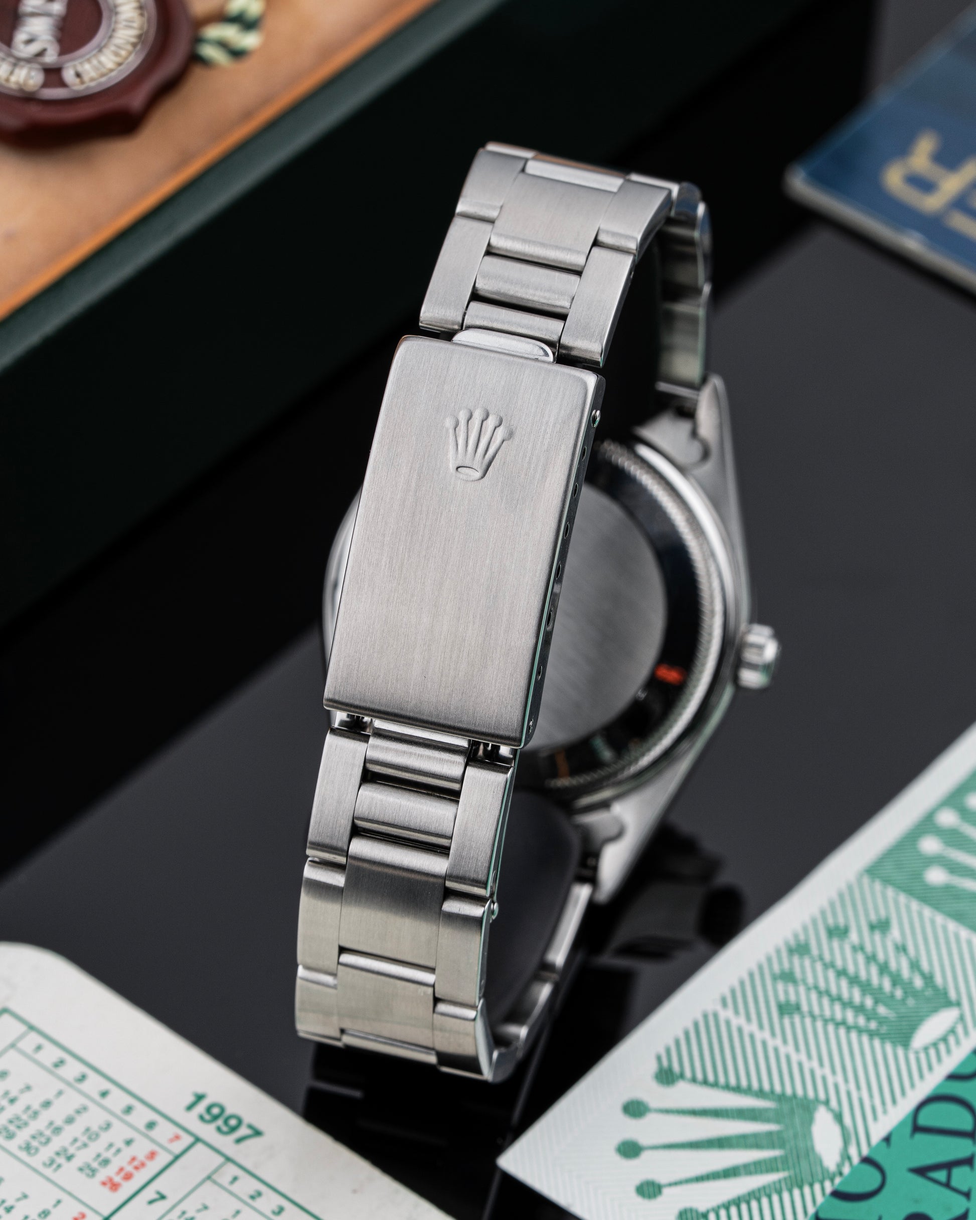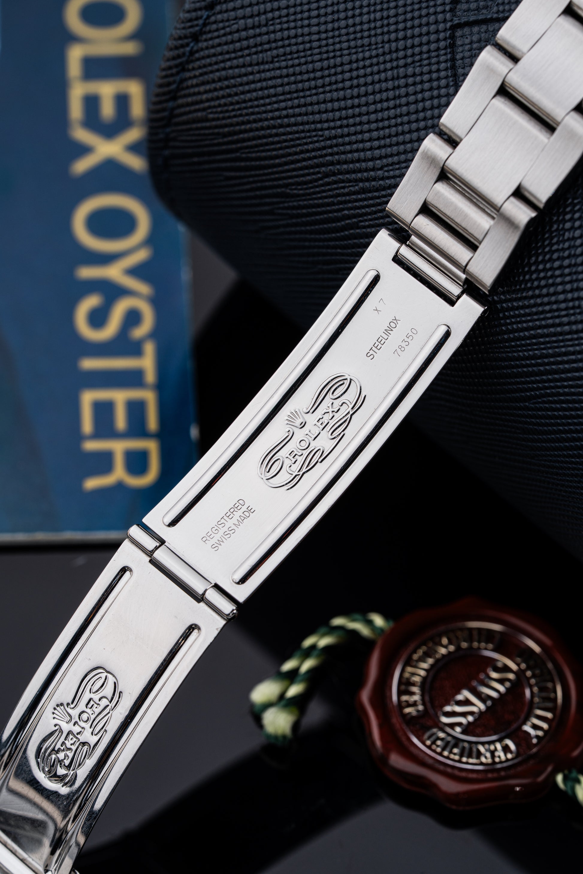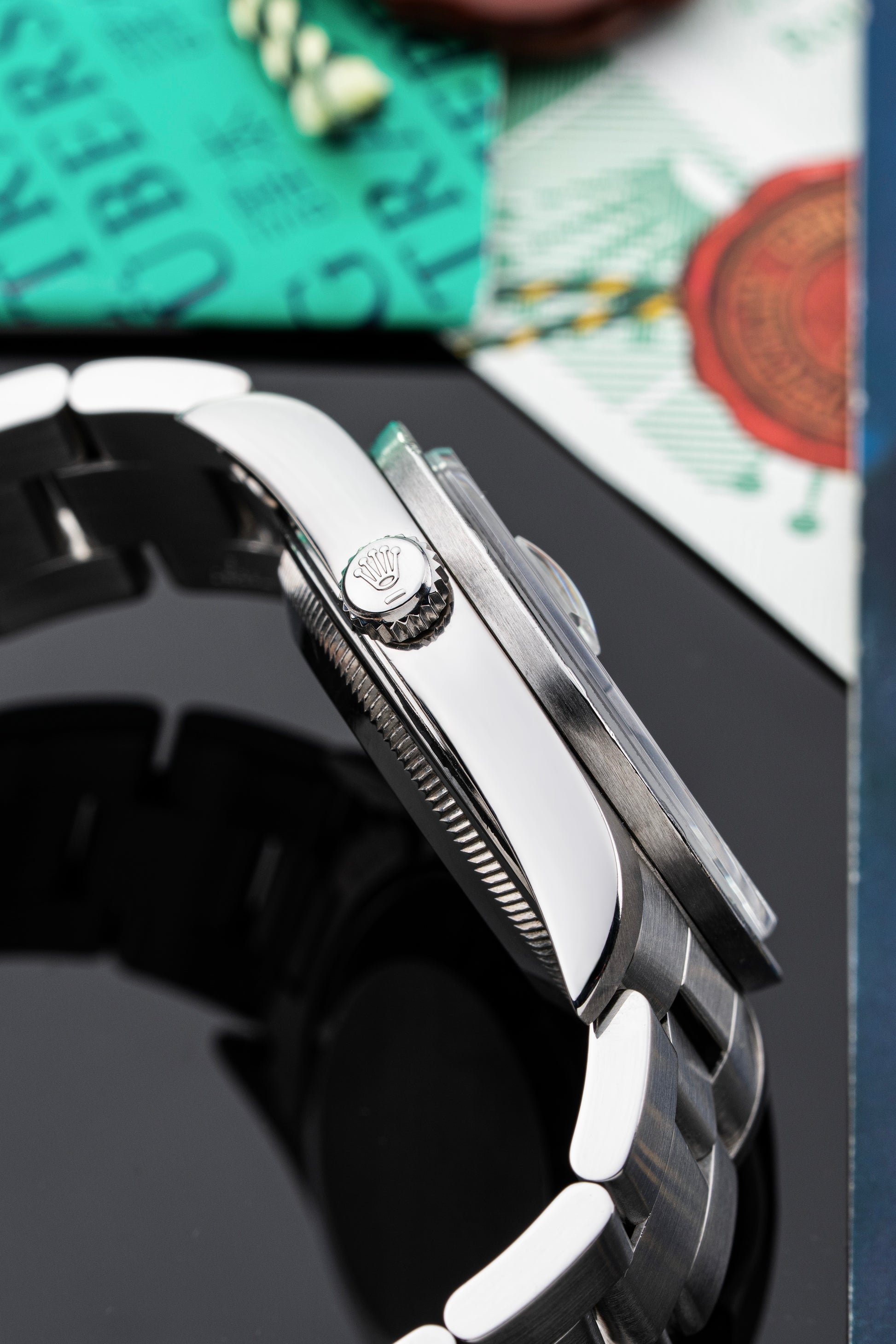 Fitted with a stainless steel Oyster bracelet, the flat three-piece links offer excellent strength and comfort. The bracelet closes securely with a folding Oysterclasp, maintaining Rolex’s emphasis on practicality and everyday wearability.