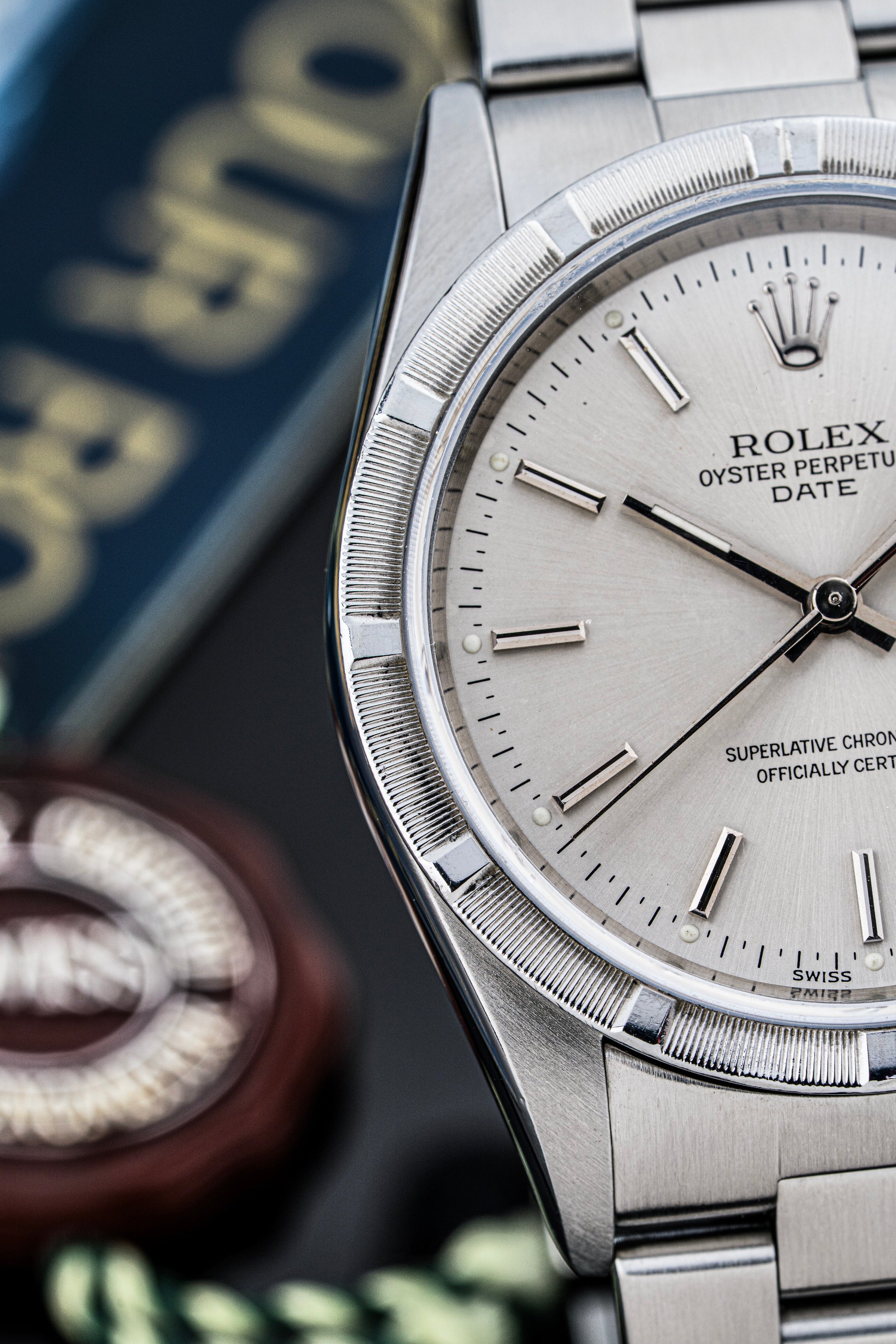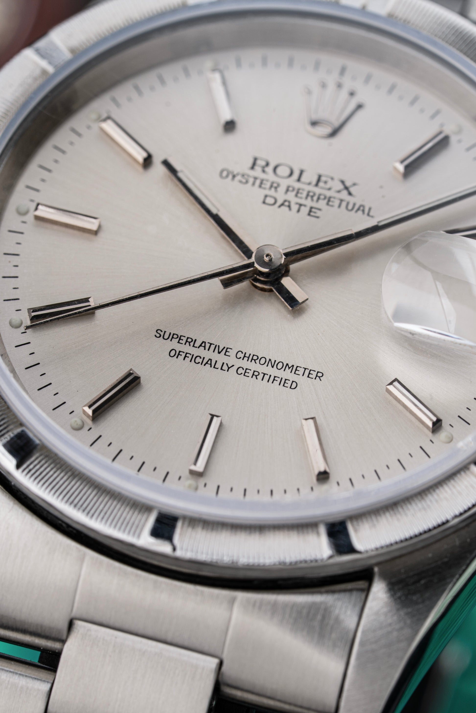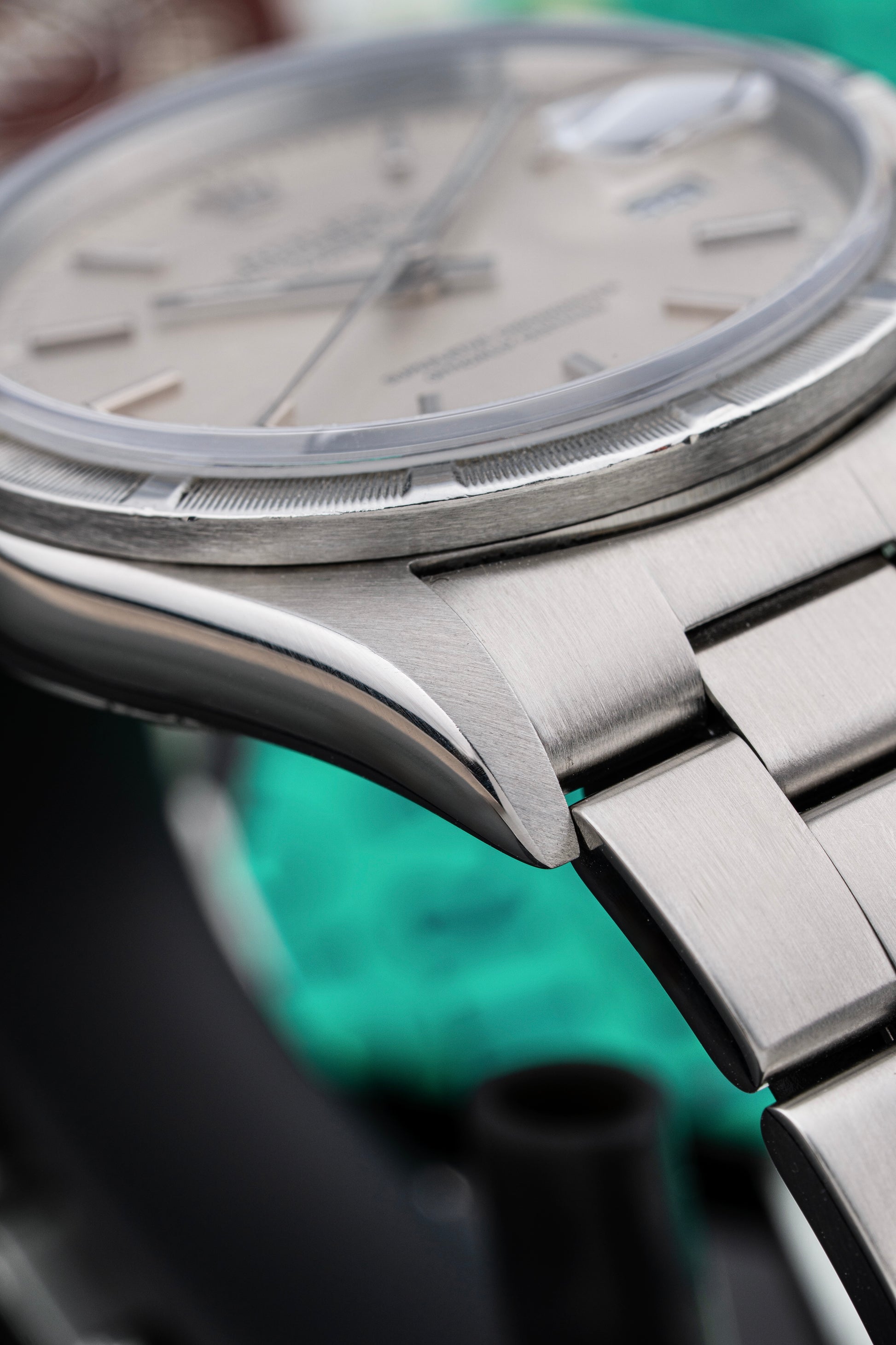 The Rolex Oyster Perpetual Date Ref. 15210 is a timeless classic from Rolex’s mid-size collection. At 34mm, it offers a versatile case size suitable for a wide range of wrists, pairing robust Oystersteel construction with the brand’s signature refinement. This reference stands out with its distinctive engine-turned bezel, a design element that adds texture and character to the watch while maintaining understated elegance.