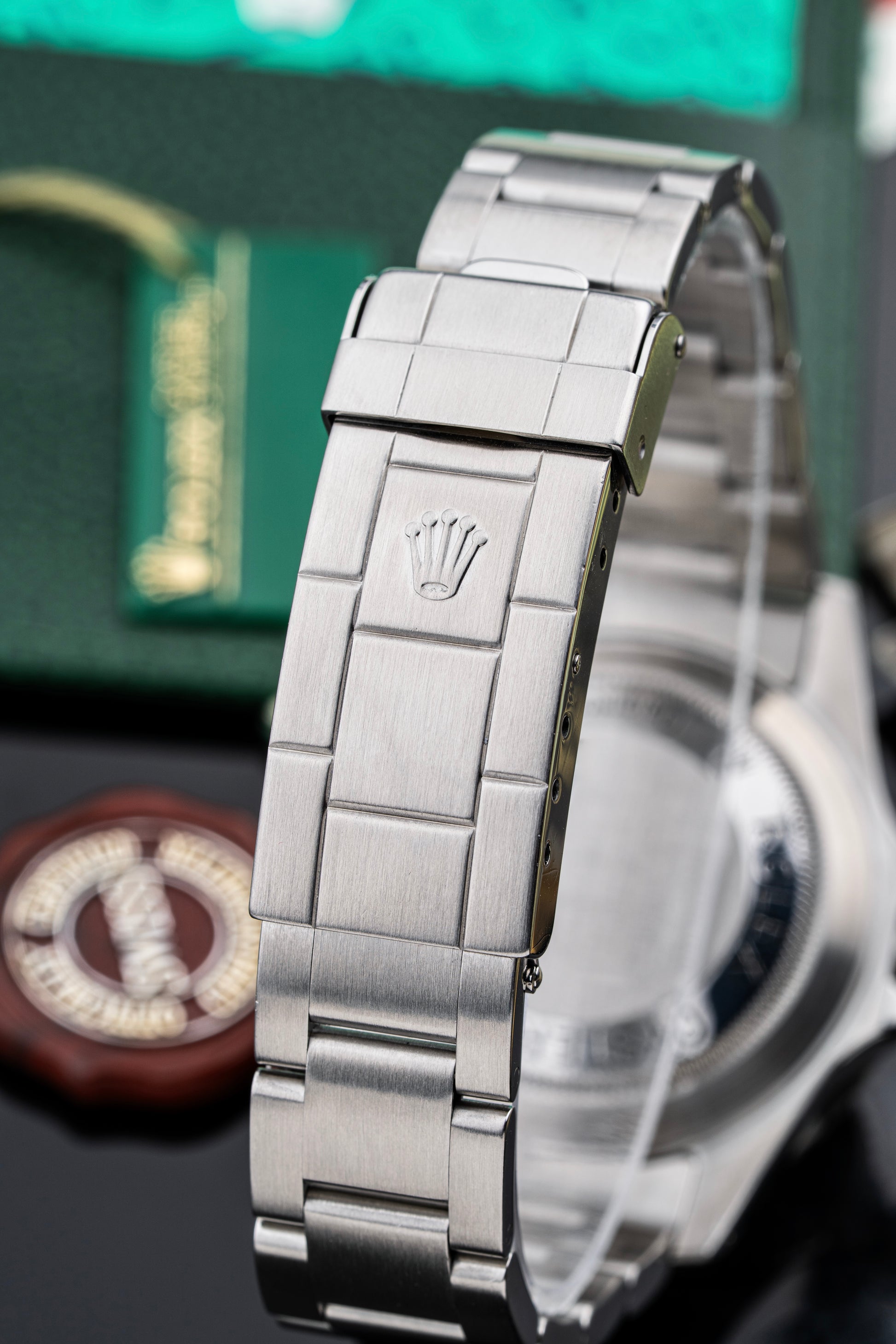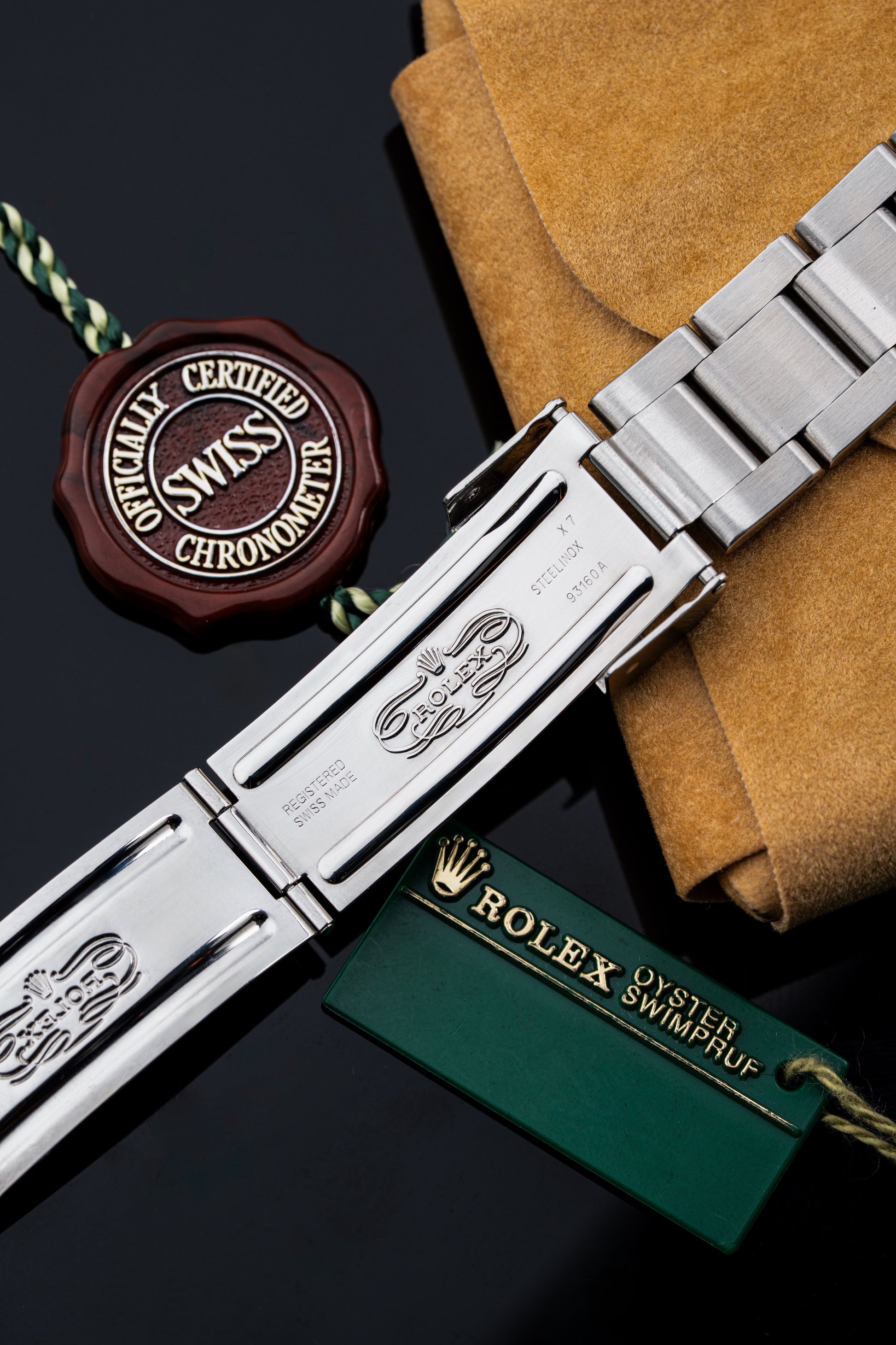The Bracelet: The watch is fitted with its original Rolex Oyster bracelet, reference 93160A, featuring solid end links and a flip-lock clasp with a diver’s extension. The bracelet is tight, with minimal stretch, and remains in superb condition. The clasp is correctly signed and closes with a firm, satisfying snap.